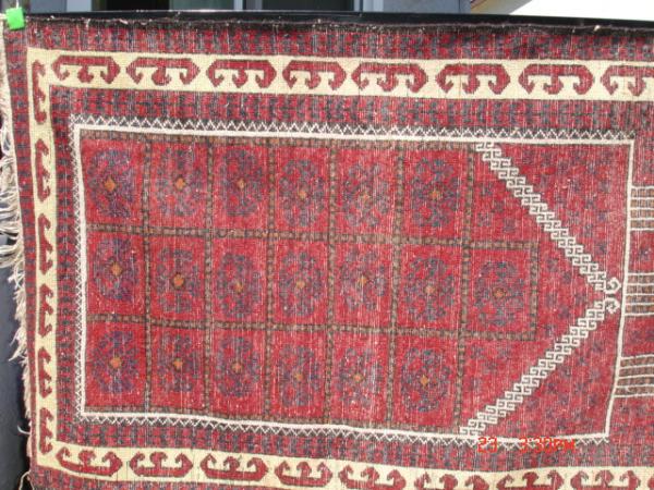 I was wondering what you could tell me about this hand tied Persian Rug. My husband & I got it as a wedding gift 25 years ago from his rich, world traveling, grandmother (who has since passed away) and have no idea of it's value or origin. It is all wool, hand tied approx. 34" x 58" and in very nice condition. We are actually looking to sell it, but want to find out more about it's background and value. I got your name by googling "free antique appriasals" and found your link.