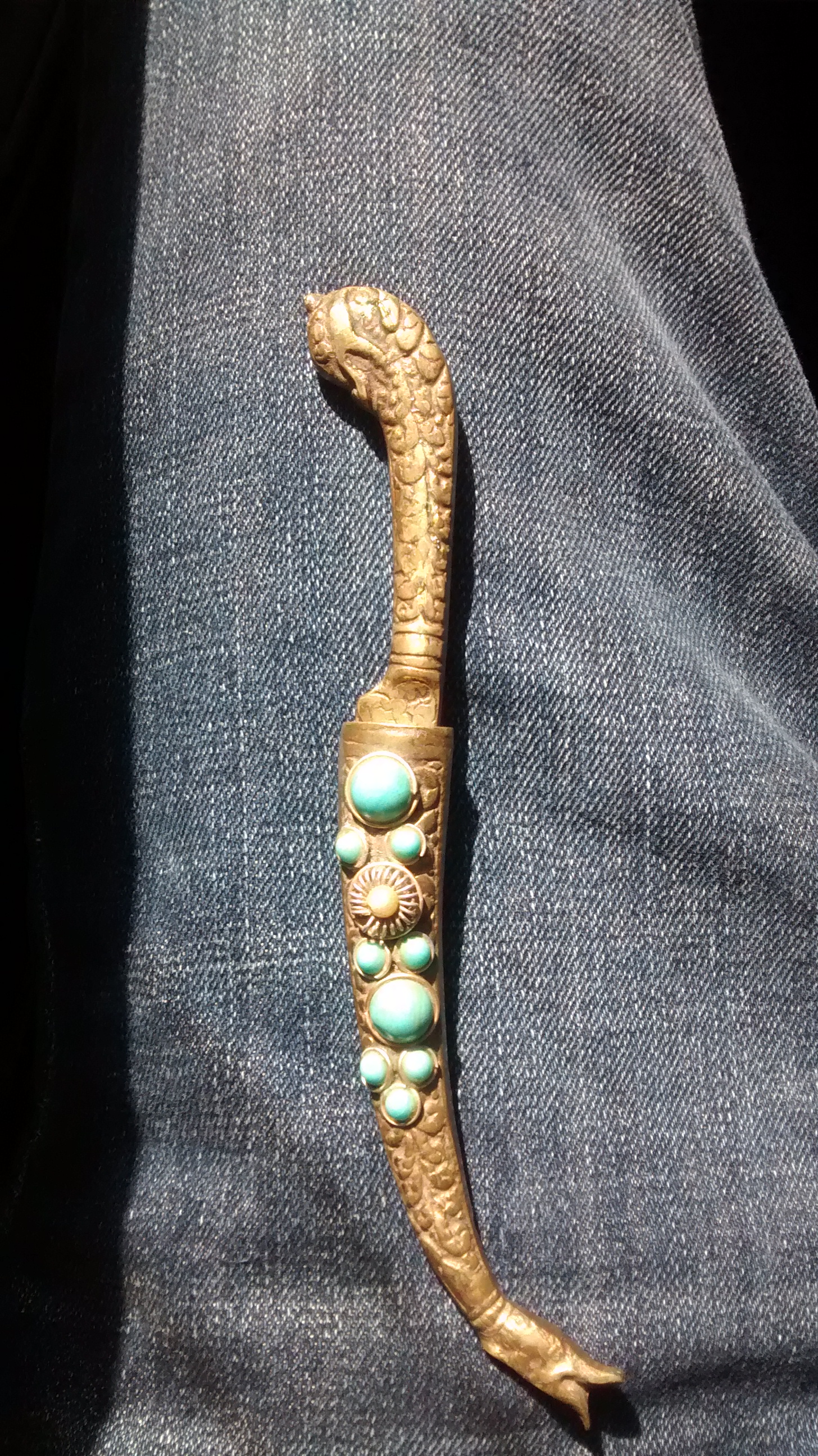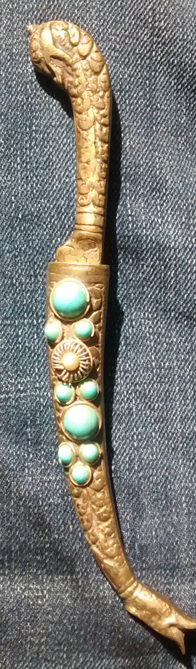SOLID BRASS TURKEY / TURKISH DAGGER KNIFE SWORD BLADE sell for $20.00 to $40.00 Would have been nice to see close up of blade..