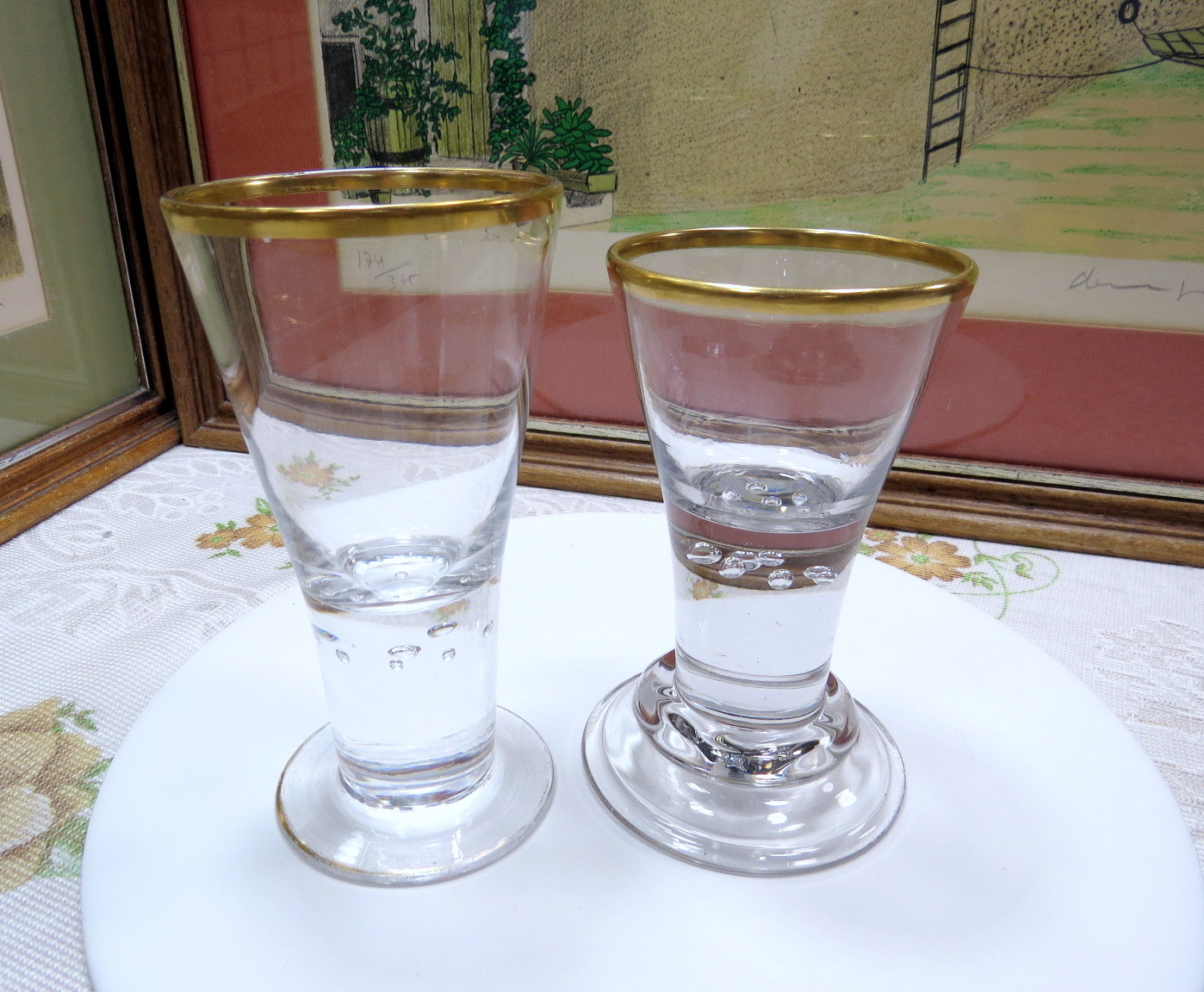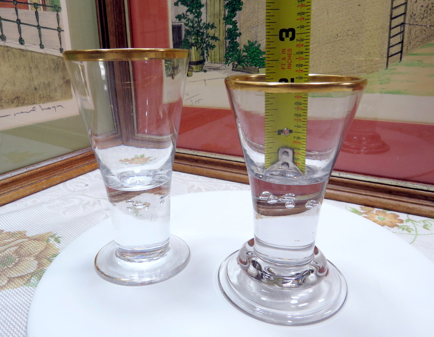 The two tumblers have a center bubble with a circle of bubbles around in the stem.