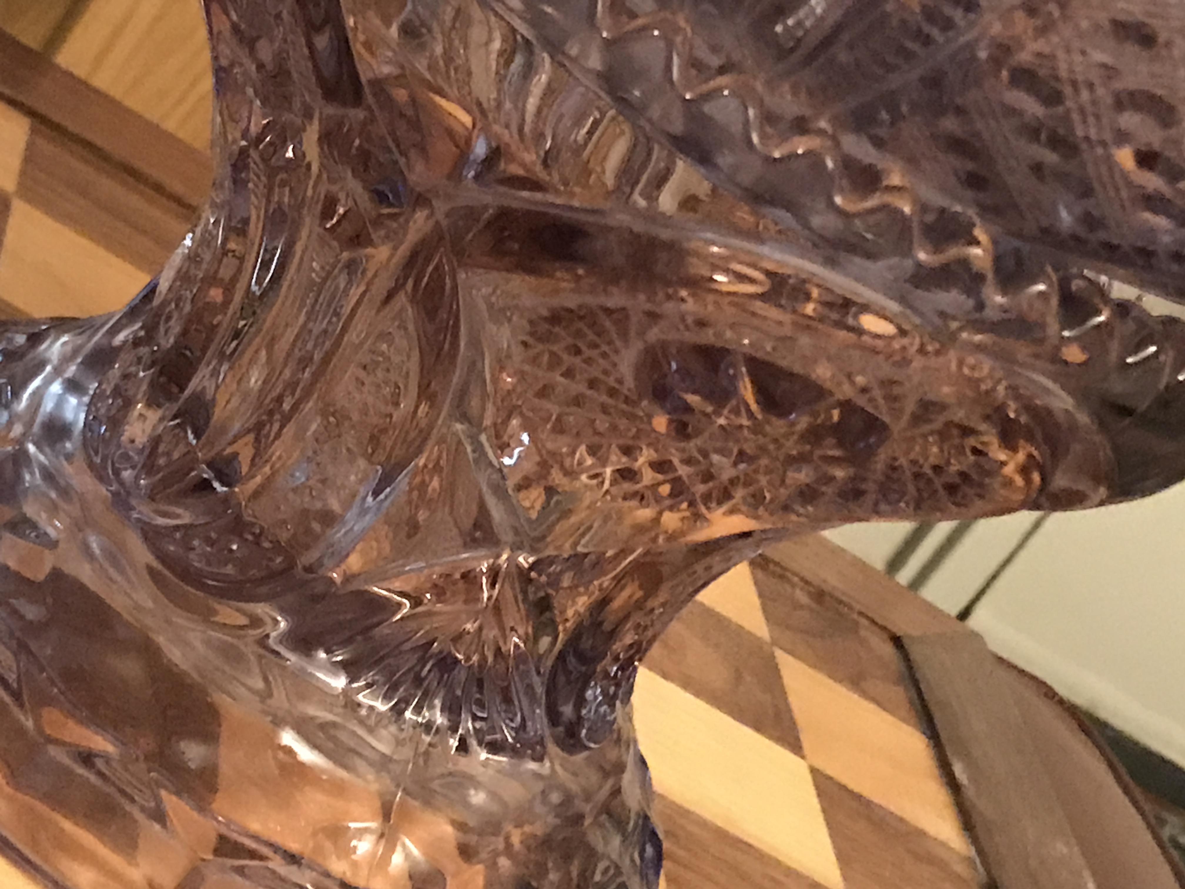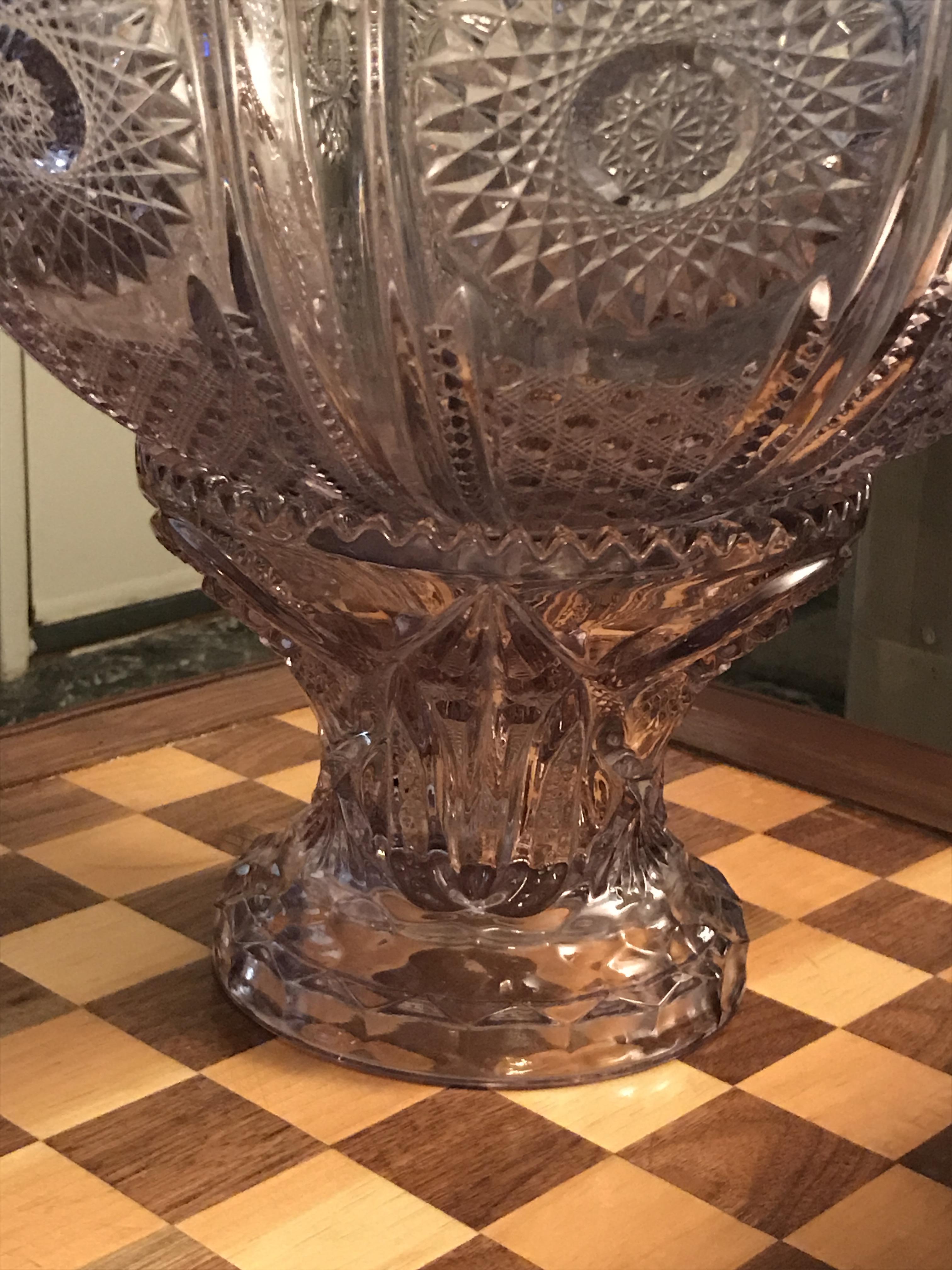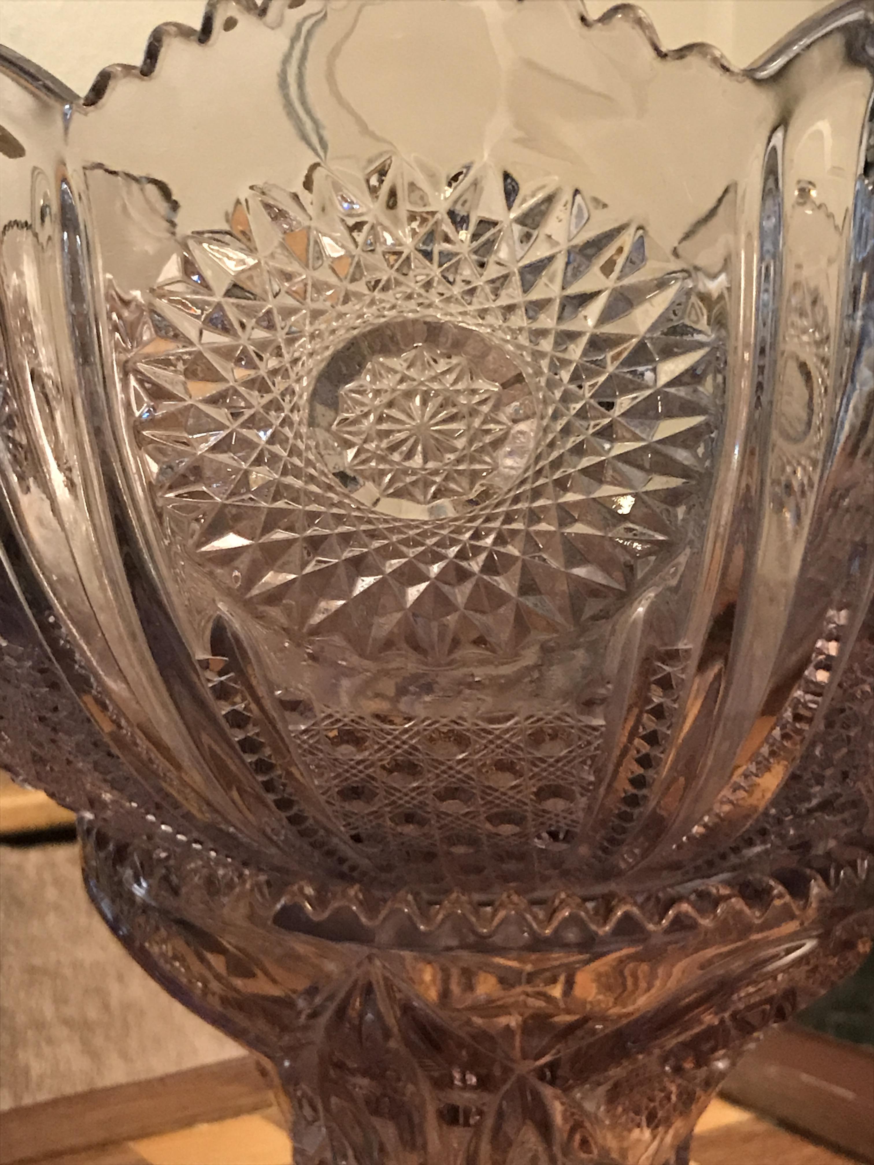 This bowl belonged to my Grandmother. I don’t know a whole lot about it other than it is the prettiest punch bowl I’ve ever seen. Beautiful pattern and wonderful shade of purple. Comes with a pedestal base that I think was a later replacement. Not sure if the base is the correct match or not. I know for sure both are from Heisey Co., just haven’t found one like this particular bowl & stand combo. It’s just breath taking. Any help would be much appreciated.