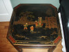 This is a GORGEOUS octagonal antique "Heritage" signed/stamped commode/end table. This table does have the "Heritage name stamped inside the front door. These tables were called "commodes" long ago and still are, but not as common. It is not a toilet. This table is in EXCELLENT condition for it's age (just a few scratches here and there that are minor) and is quite large. It measures approximately 30" wide X 30" long and is about 19" tall. I will include a link about the Heritage company that will give you a little bit of information about the quality of the furniture that I found online. I'm almost sure that the wood is Walnut with Mahogany (or burled Walnut). These were the commonly used woods long ago. This is solid wood and has TONS OF STORAGE SPACE underneath the table. All of the hardware/knobs are original.