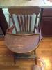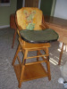 Highchair with skeleton key hole under the tray. It also has a plate indintion on tray. Any help on its history or worth would help. Thank you