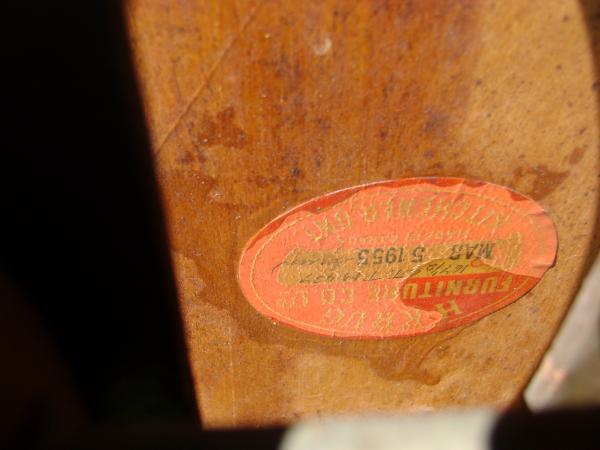 This chair, manufactured by H.Krug of Kitchener, Ontario, Canada on March 5/1955, was used by a Bell Telephone operator at the switchboard from that date until an unknown year when it was to be thrown out. My father worked for Bell Canada and got to take it home and save it from being disposed of. It has been around our family as long as I can remember. It is a fairly solid chair and it is quite comfortable to sit in. From what information I have found, it may be made of white oak but I am not certain. It could be for sale if the right offer was made.
