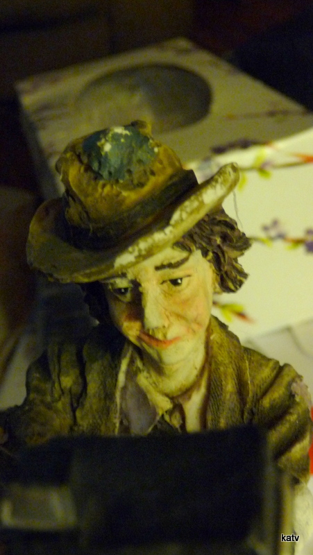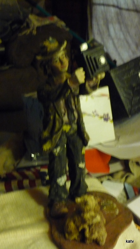 hobo statue with very distinct attention made to details. base has been removed or scraped off.