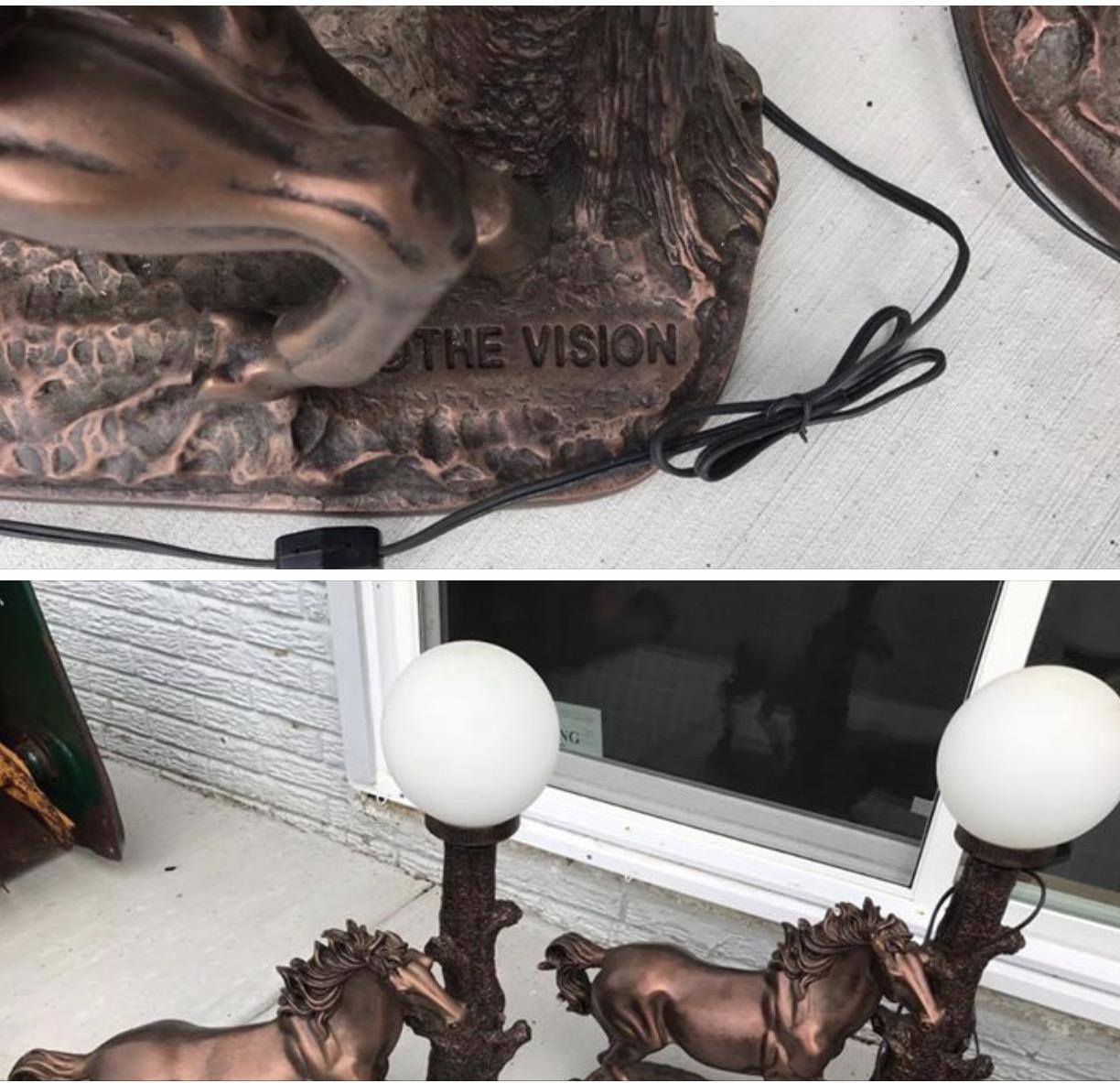 I have two lamp copper and/or bronze horse lamps the have the impression of the words: "The Vison". Got them a few weeks back and have no clue on the history or value of the two lamps. No clue on the year made either Can you please help me figure this out? If there is more details on these items somewhere let me know where to look. Thank you for your time.