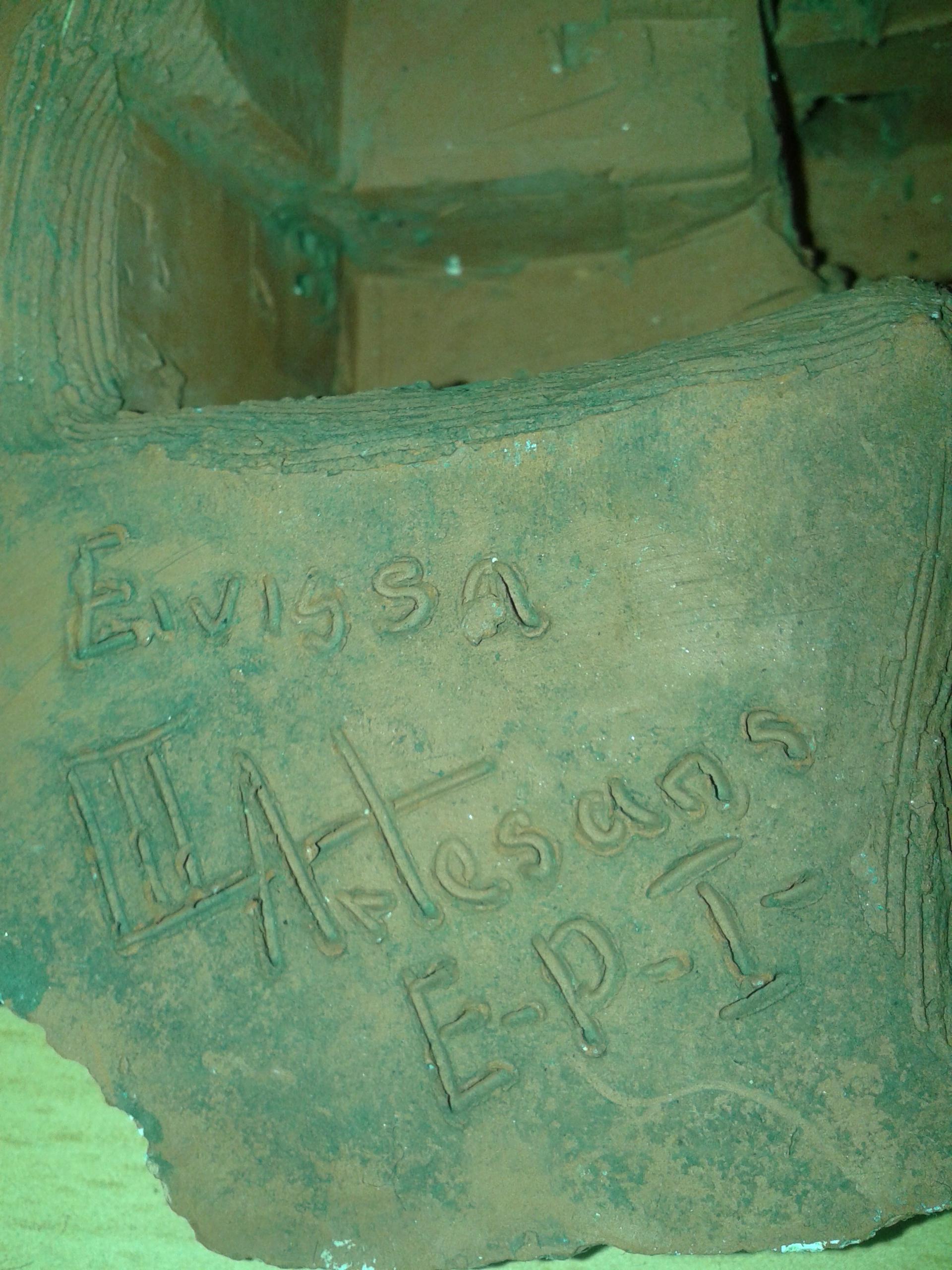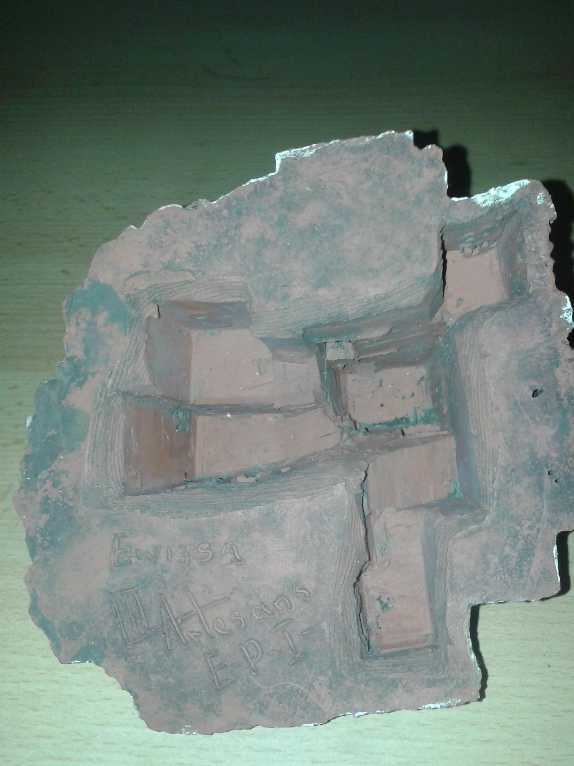 Antique house made of brick with an inscription on the bottom.