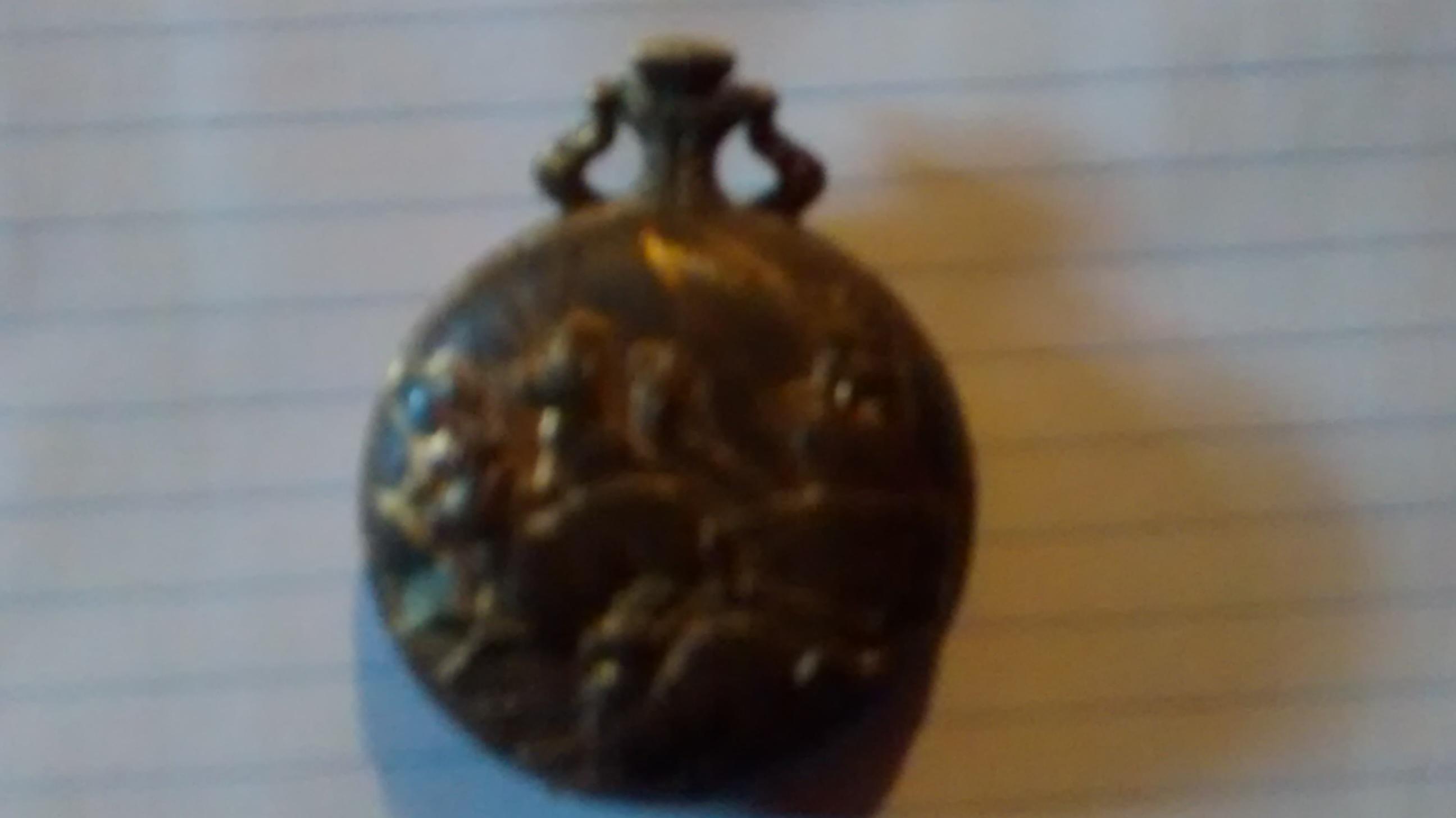 Arnex is a 17 jewel incabus Swiss made antique pocket watch.It is a side wind-up,with a huntercase cover. It has the men hunting deer on front and a floral design on back.