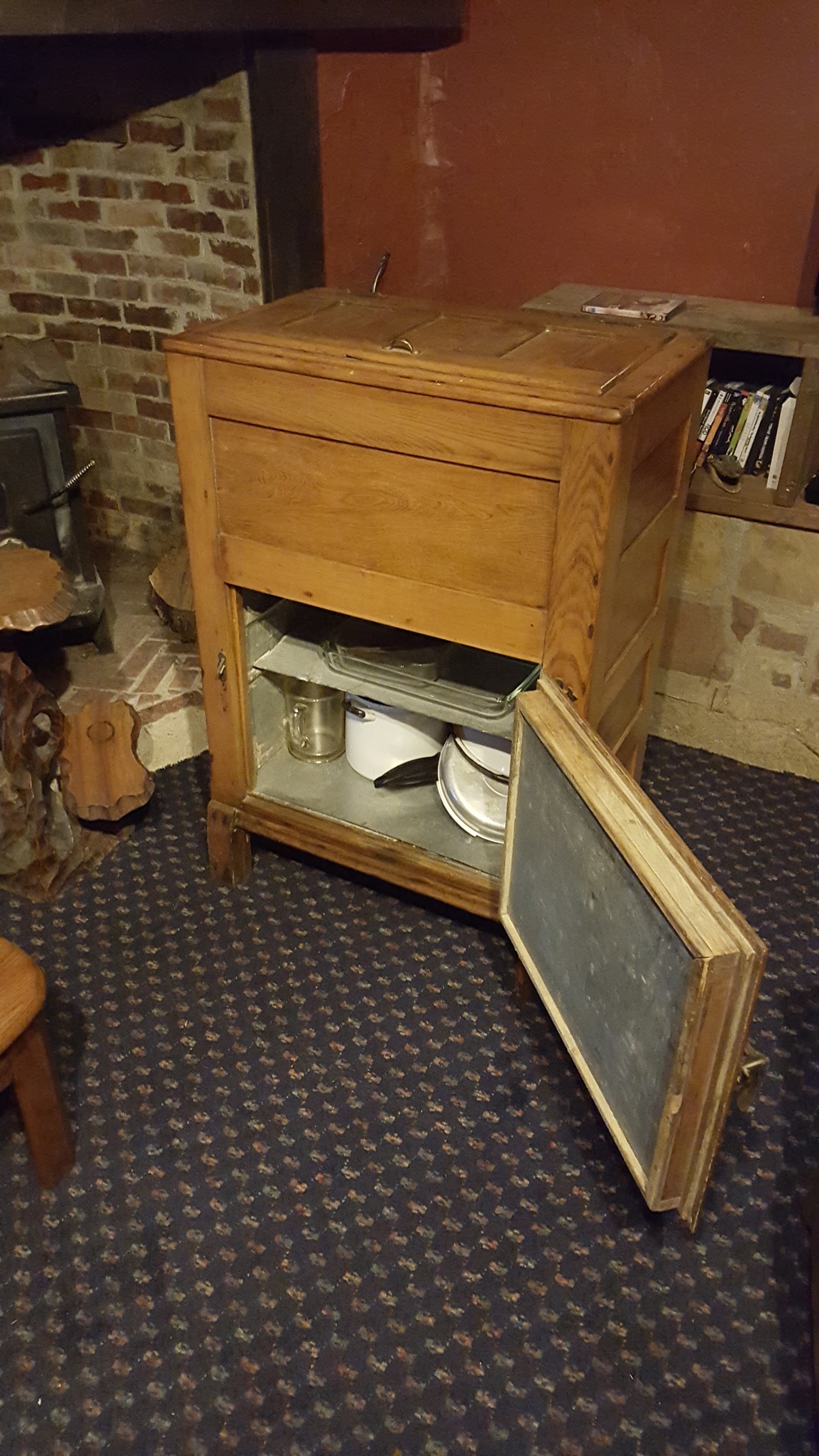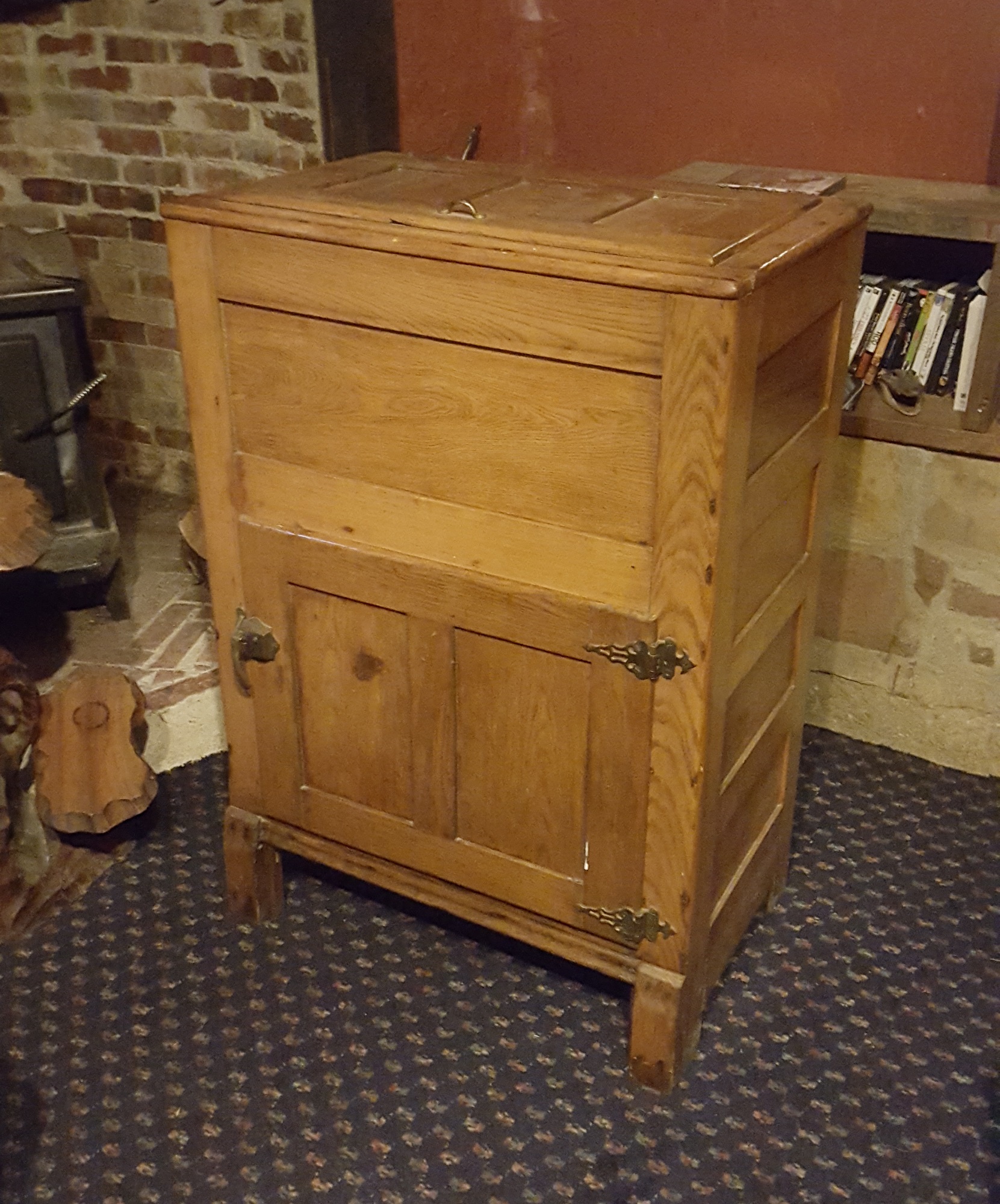 Here is a Ice Box that I am looking to sell. I was hoping for more information on it and an approximate value. I didn't see a label or makers mark on it but have included several photos. It seems that it may have been refinished based on other ice boxes from the era I believe this one to be from but can not say this with any certainty.