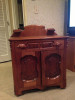Oak wood cabinet, brass hardware, original zinc interior with racks.