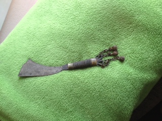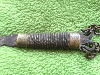 This knife is about 10 inches long. Guessing from the decorative design that it is of indian or middle eastern origin.