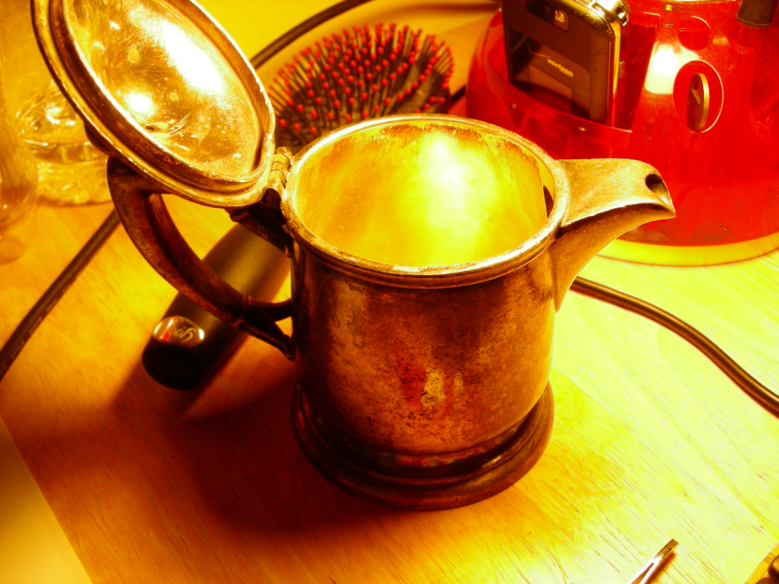 Antique internationl silver teapot with a large P with a laurel leaf