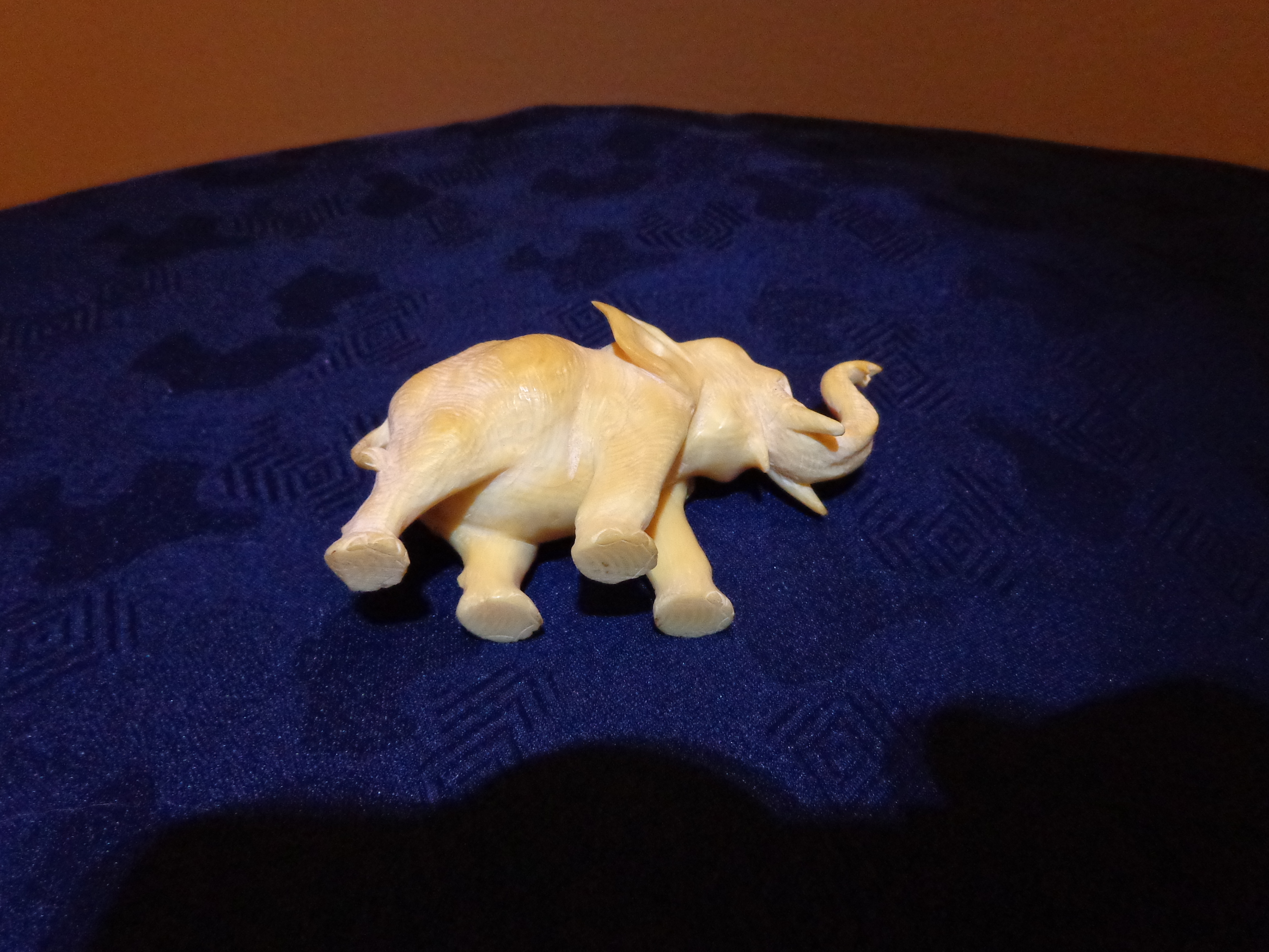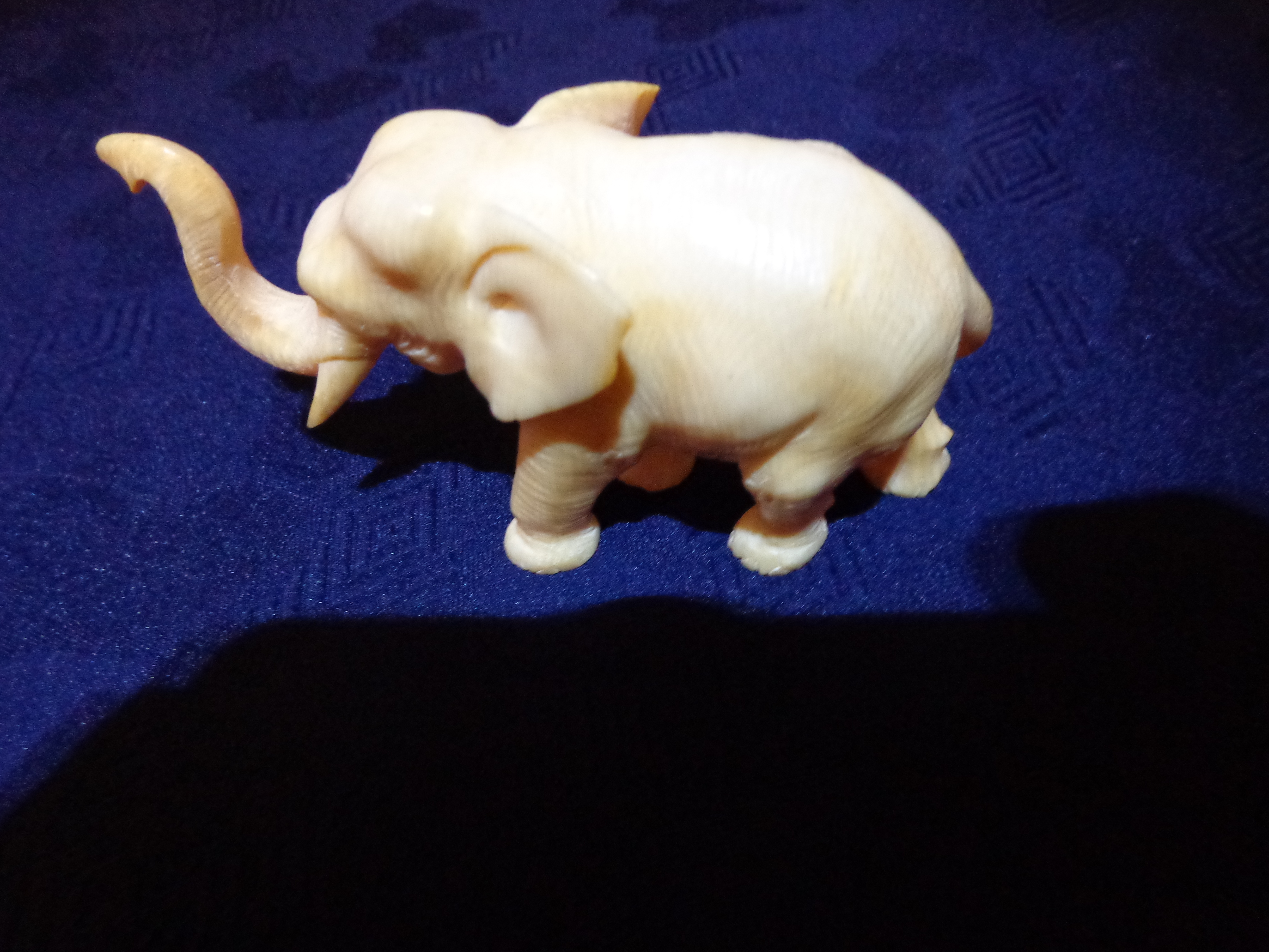 This is a real antique, ivory elephant. He has his trunk up for good luck! All of the carving during this time was done by master craftsman and is far superior to the carving of today. The detail is amazingly intricate.