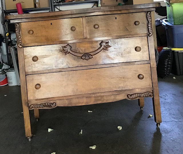 buffet sideboard has beautiful carvings and original hardware and is in great shape. The oak table is rare because of the dragon head pedestal legs and has been wrapped up for protection and a beautiful piece of furniture. The dresser is vintage and has a curved frame with mirror. The frame needs to be repair but overall in good shape.