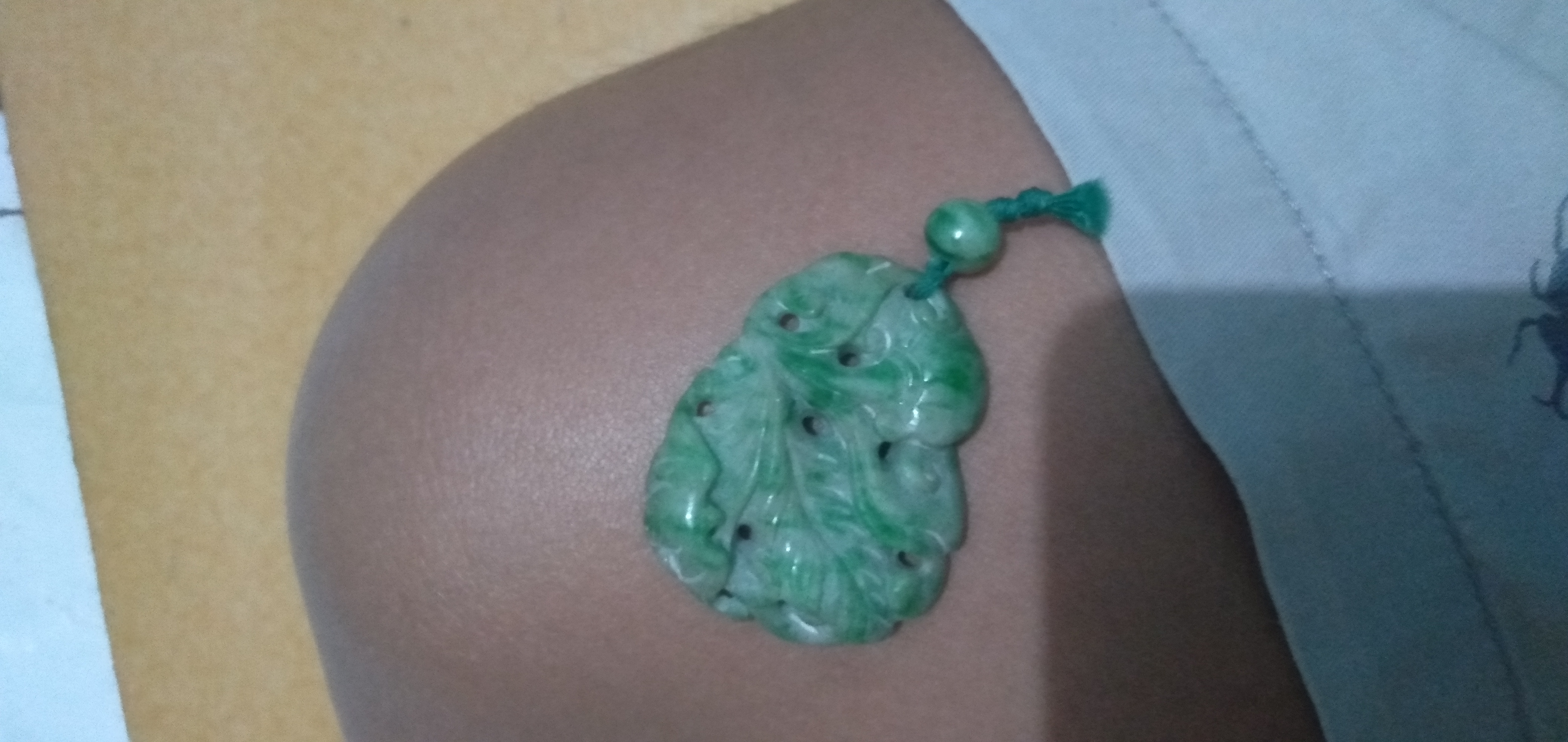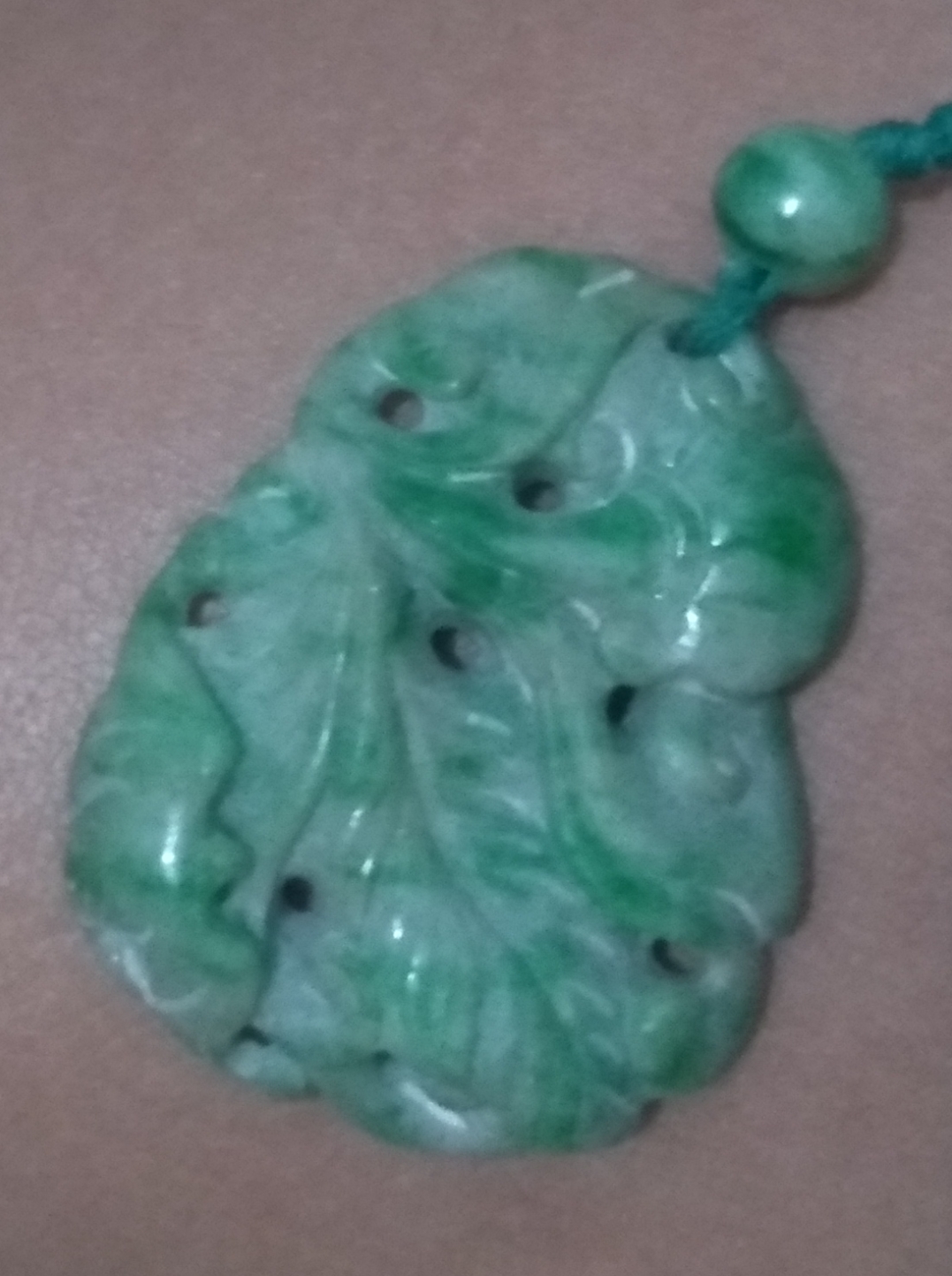 Hello I trade in carved jade on almost a daily basis and I don't think this is in any way a lotus flower or leaf. Possibly not even leaf, as usually a stem is more obvious and the suggestion of branches. I go with "feather" myself, particularly as their national bird is the Philippine Eagle. The seven holes are significant, perhaps signifying the seven chakras of healing. I would suggest therefore that it's a lucky amulet of healing and protection.