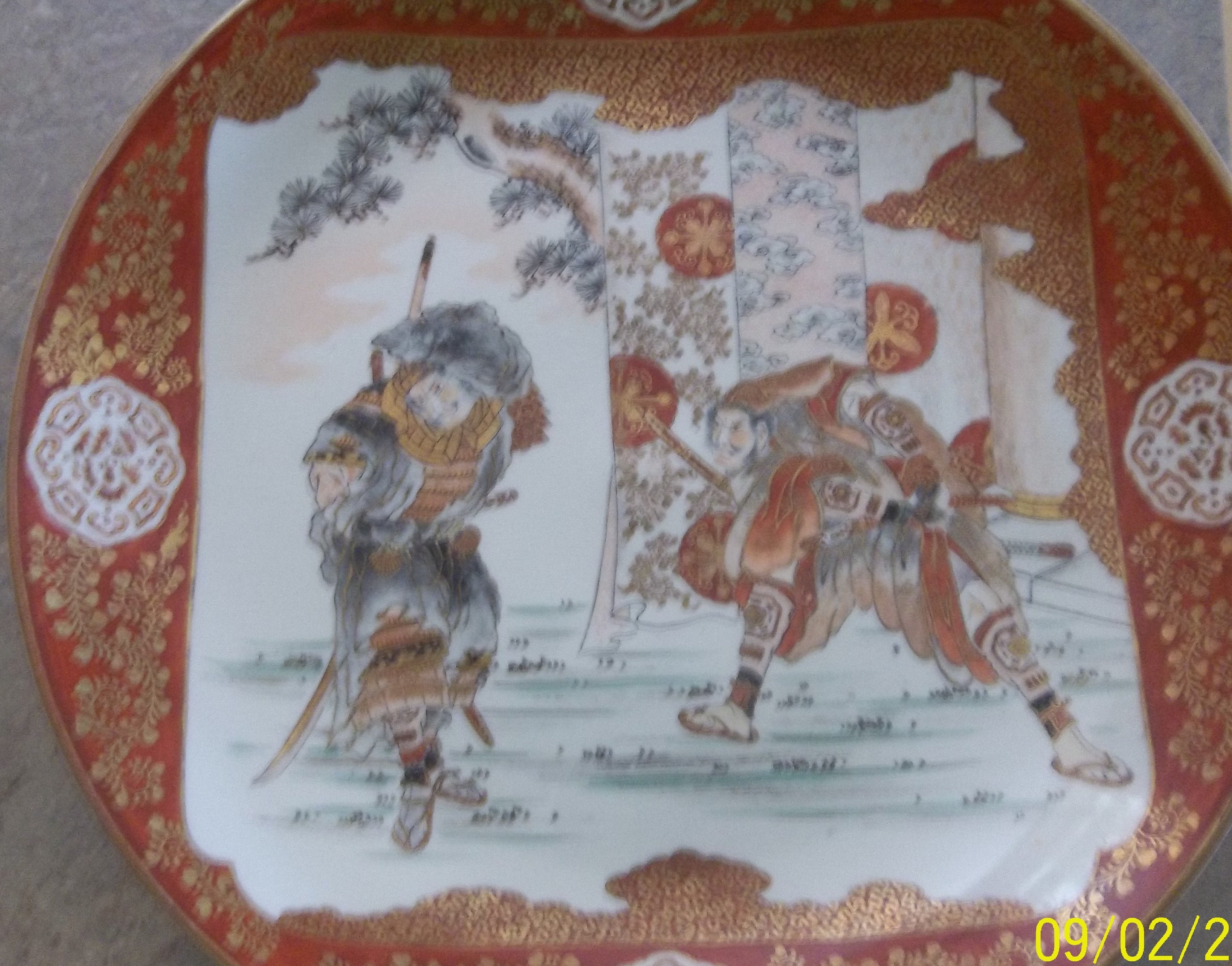 This Japanese porcelain plate was brought back from Japan just after WWII ended. It is hand painted with gold painted on the front.