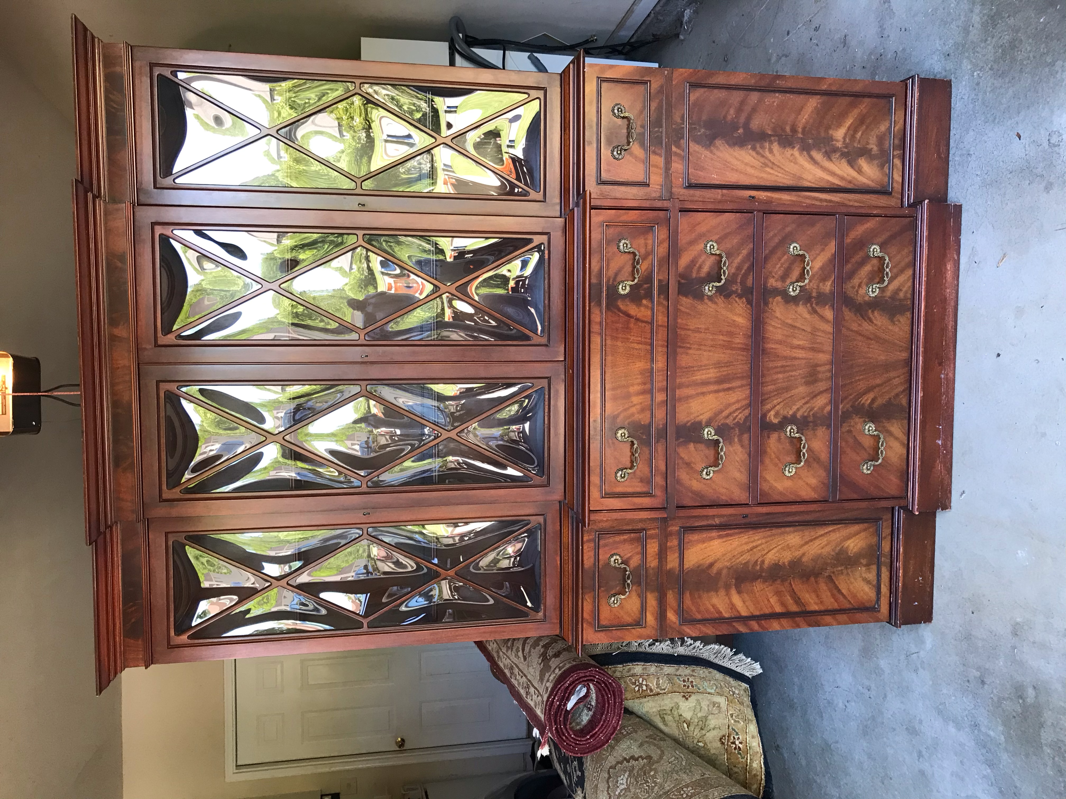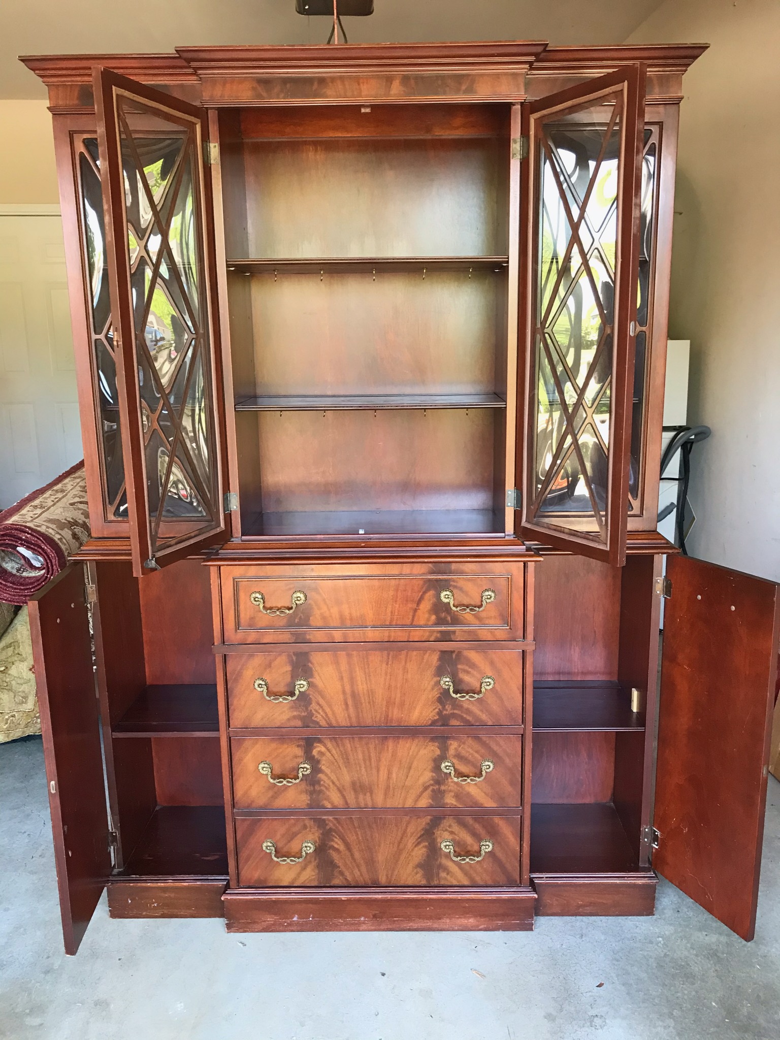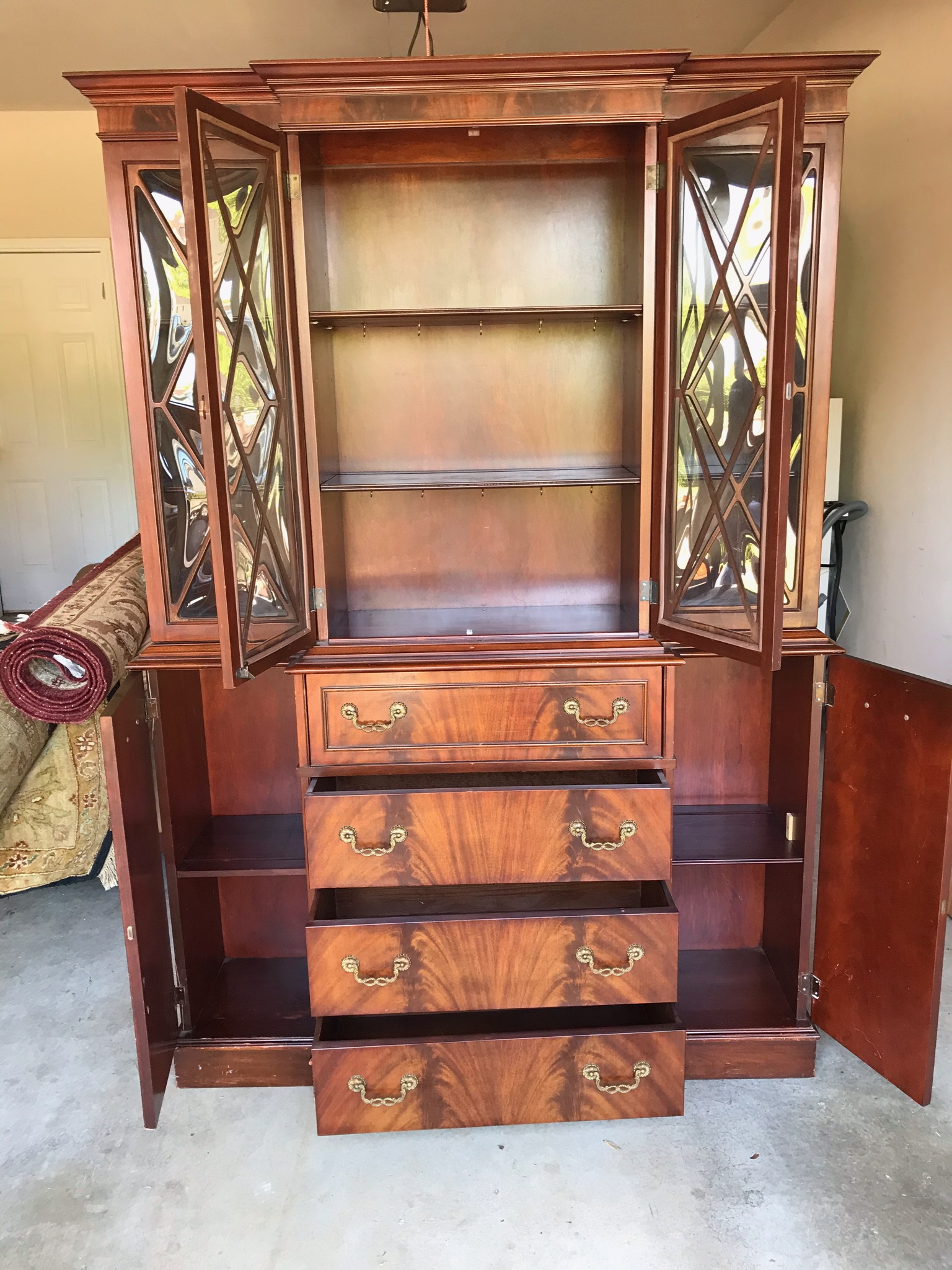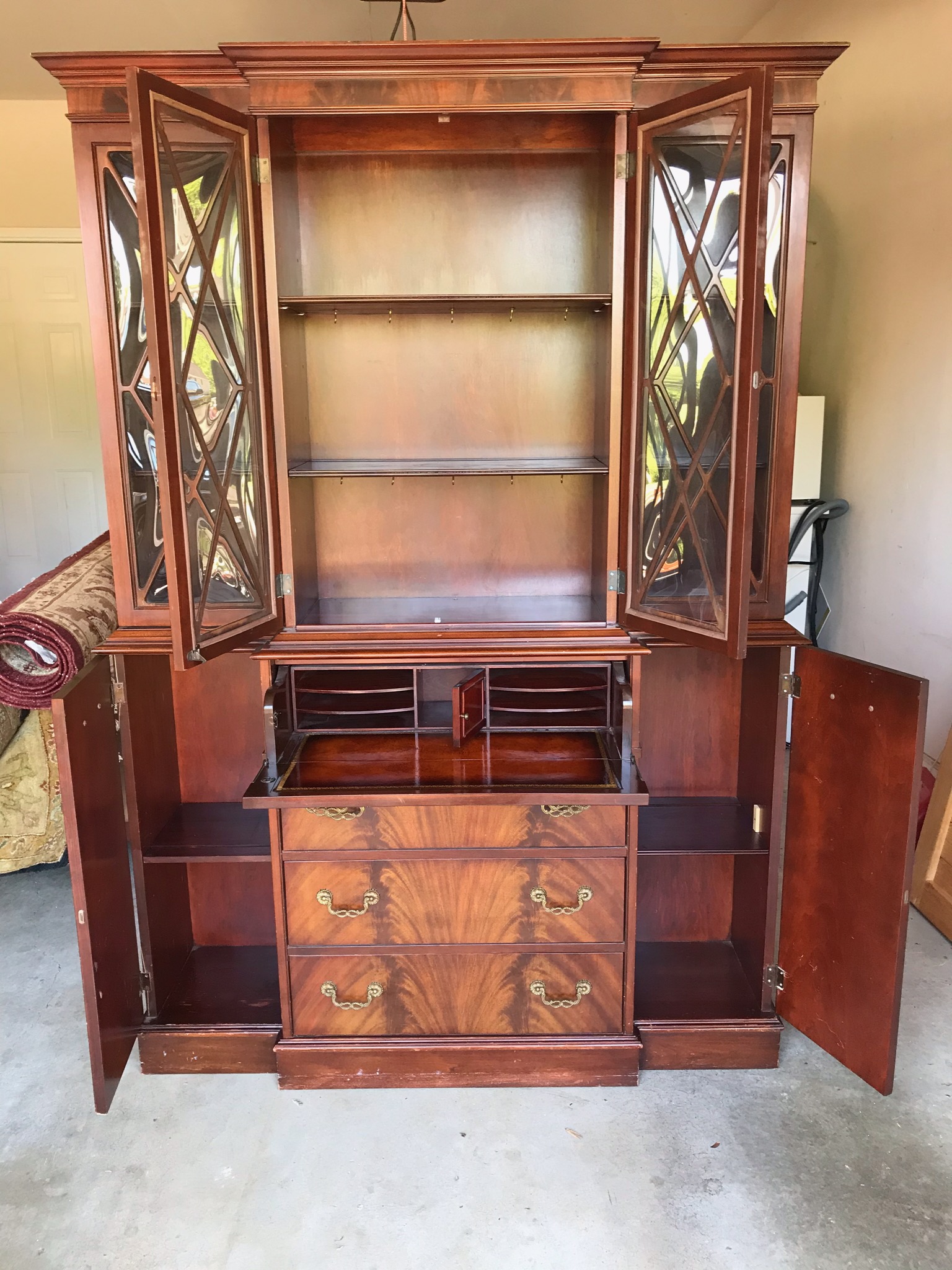 Approximately 100 years old. Has a desk with the China cabinet. Solid Mahogany.