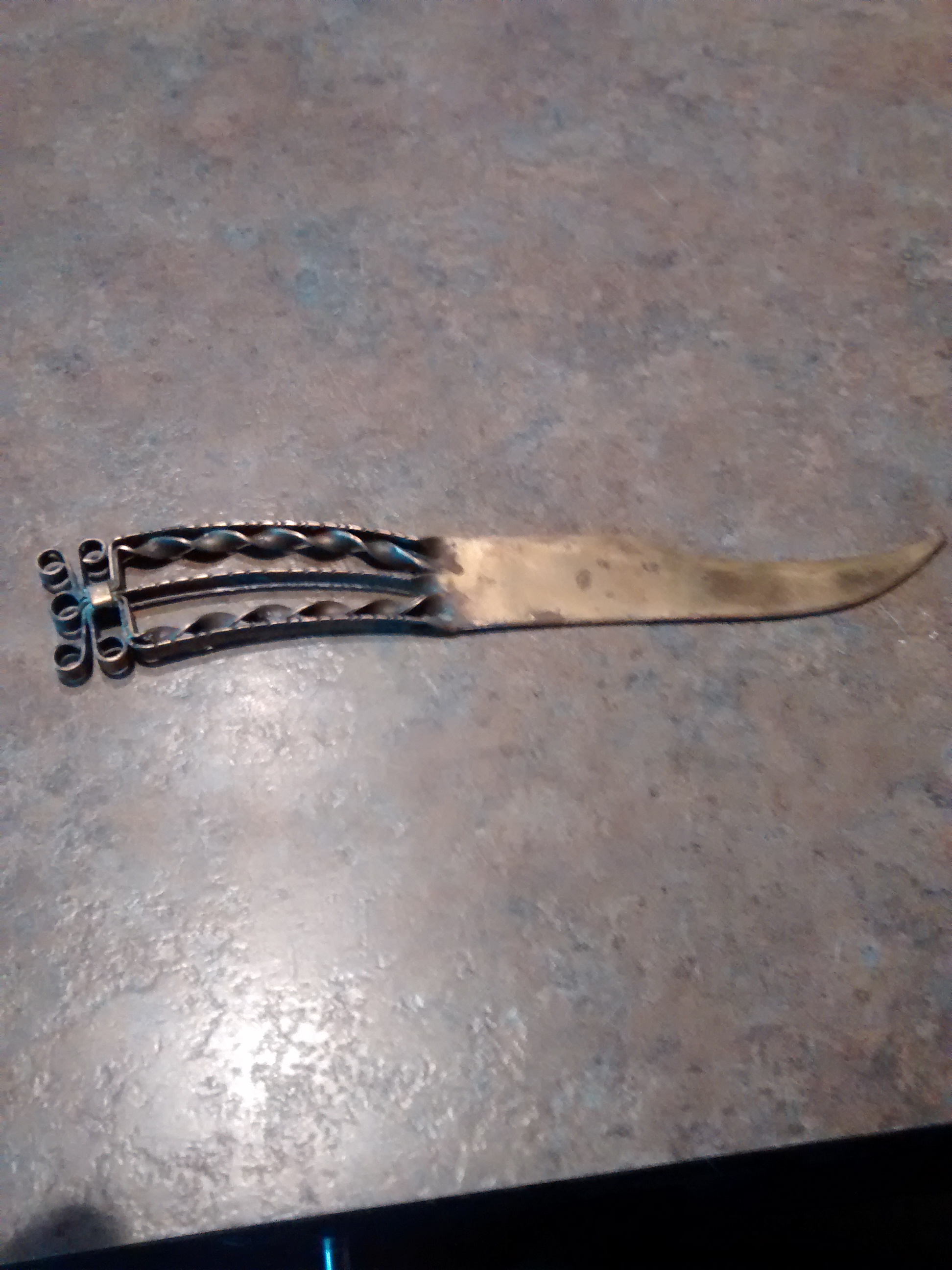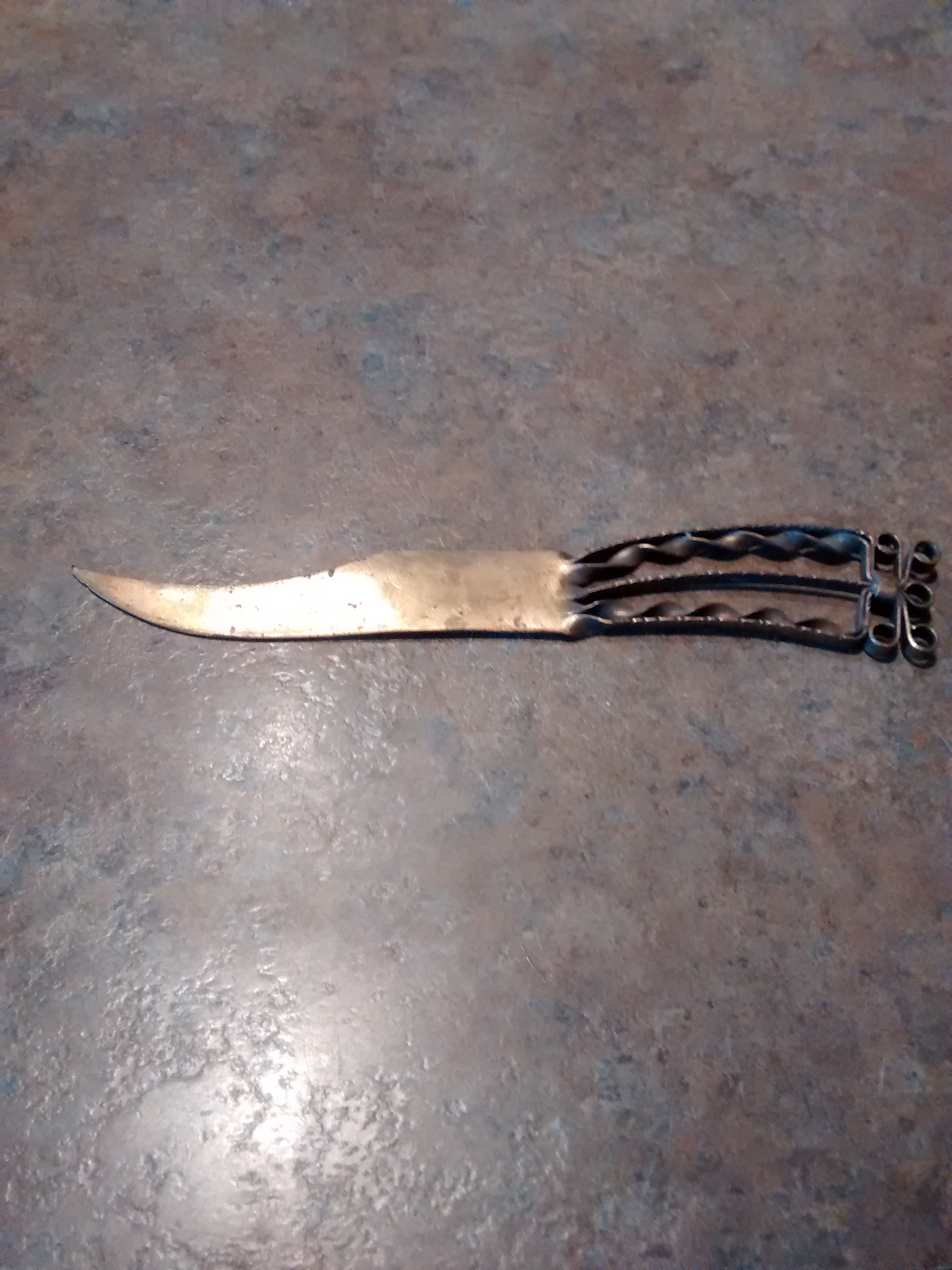 Antique handmade knife. I think it's made of brass but not positive. Tip is bent a little.