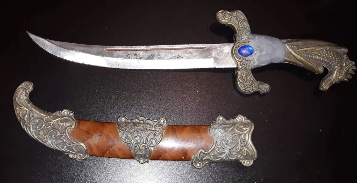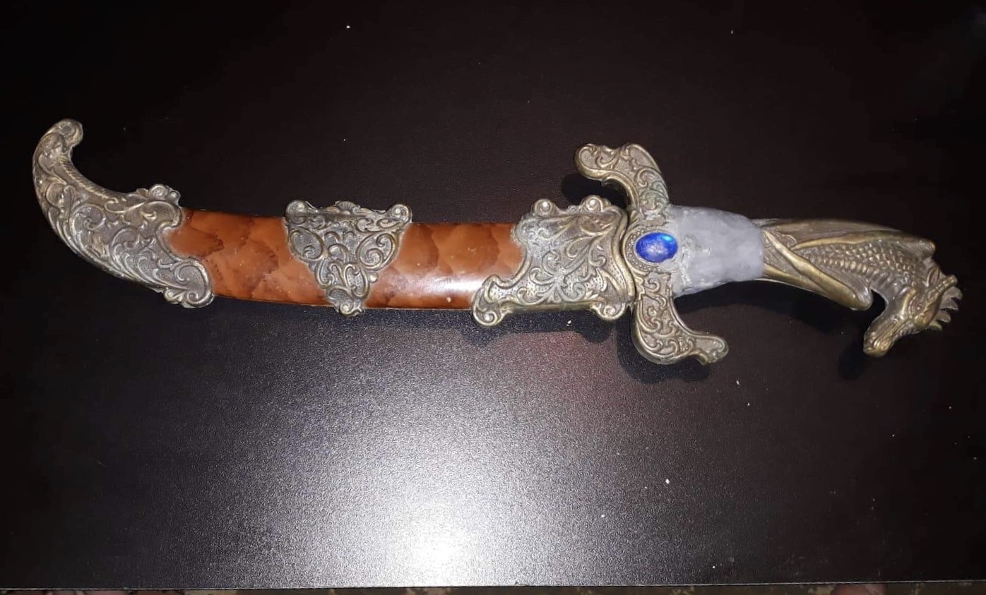 I have an old curved knife with dragon handle and some blue smaragd. I would like to know whether is real or not and from what period and country it is.