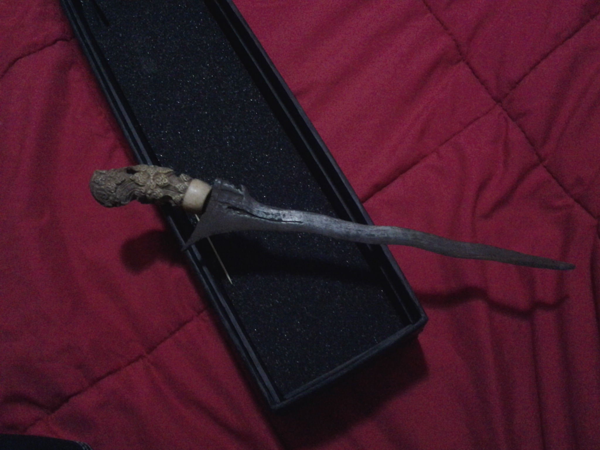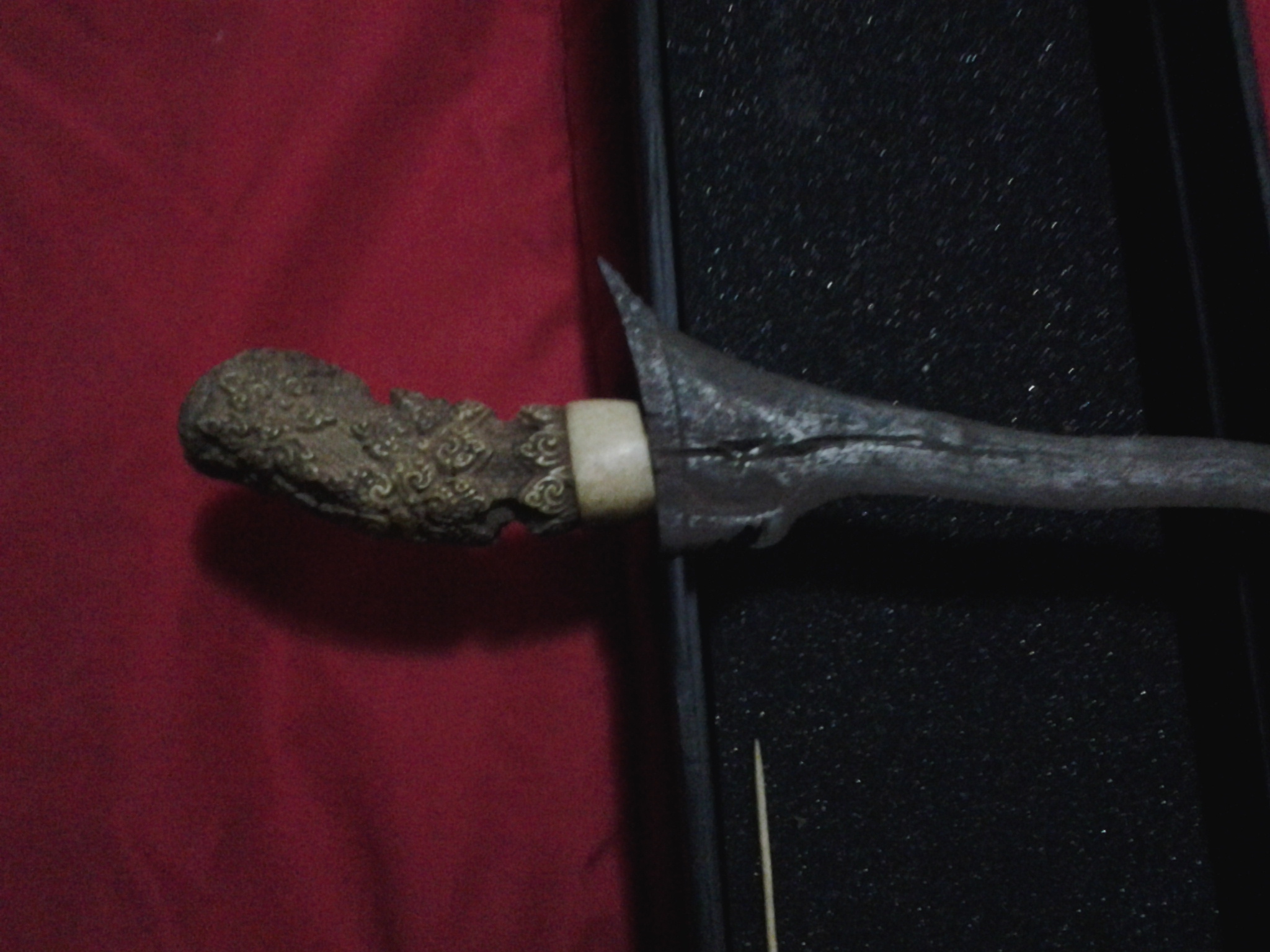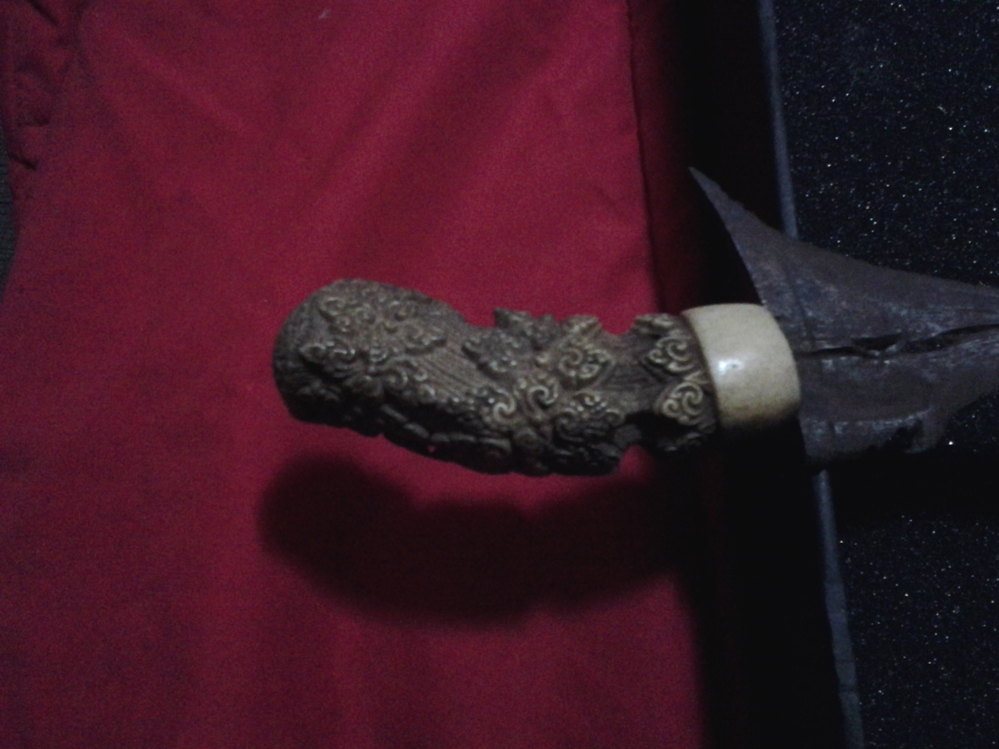 Ivory/bone handle, very intricately carved. Blade is approx 35 cm long....