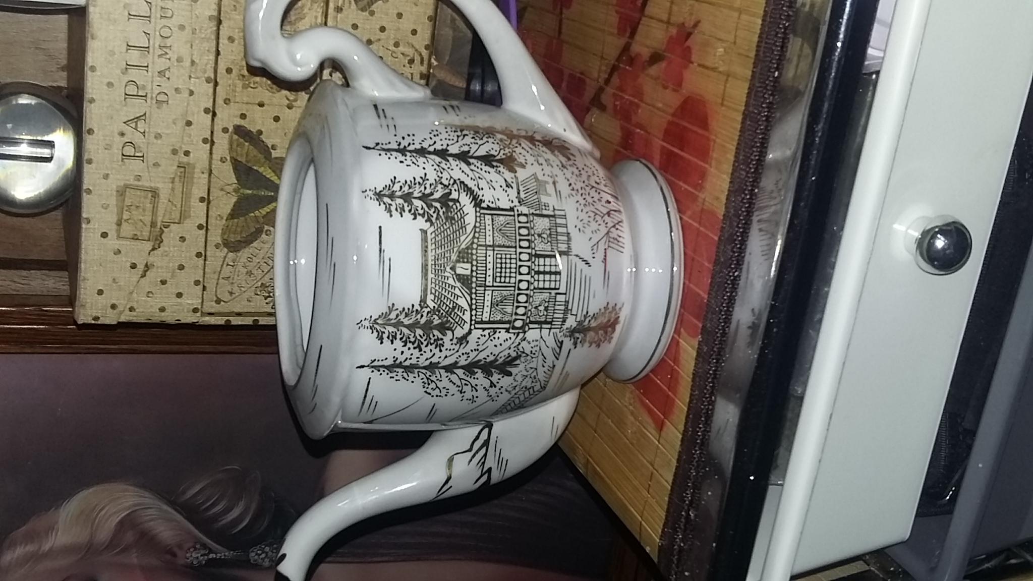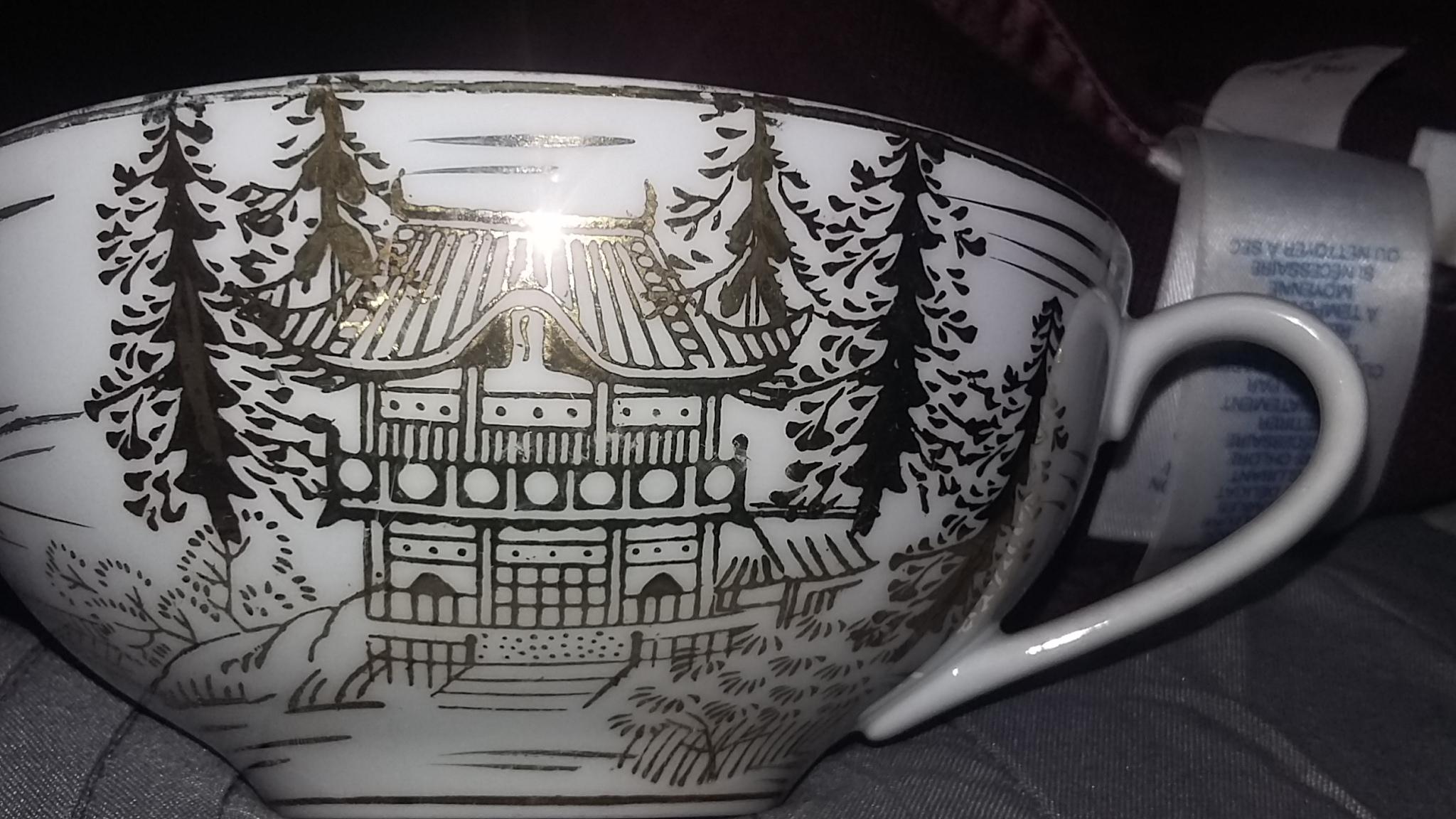 place settings for 8. hand painted in gold.Each place setting includes dinnerplate,salad plate,soup bowl,fruit bowl including cup and saucer. it also comes with teapot and creme and sugar bowl with lids. I believe it comes from the world war 11 era. all of the dishes i believe are new or in exellant condition