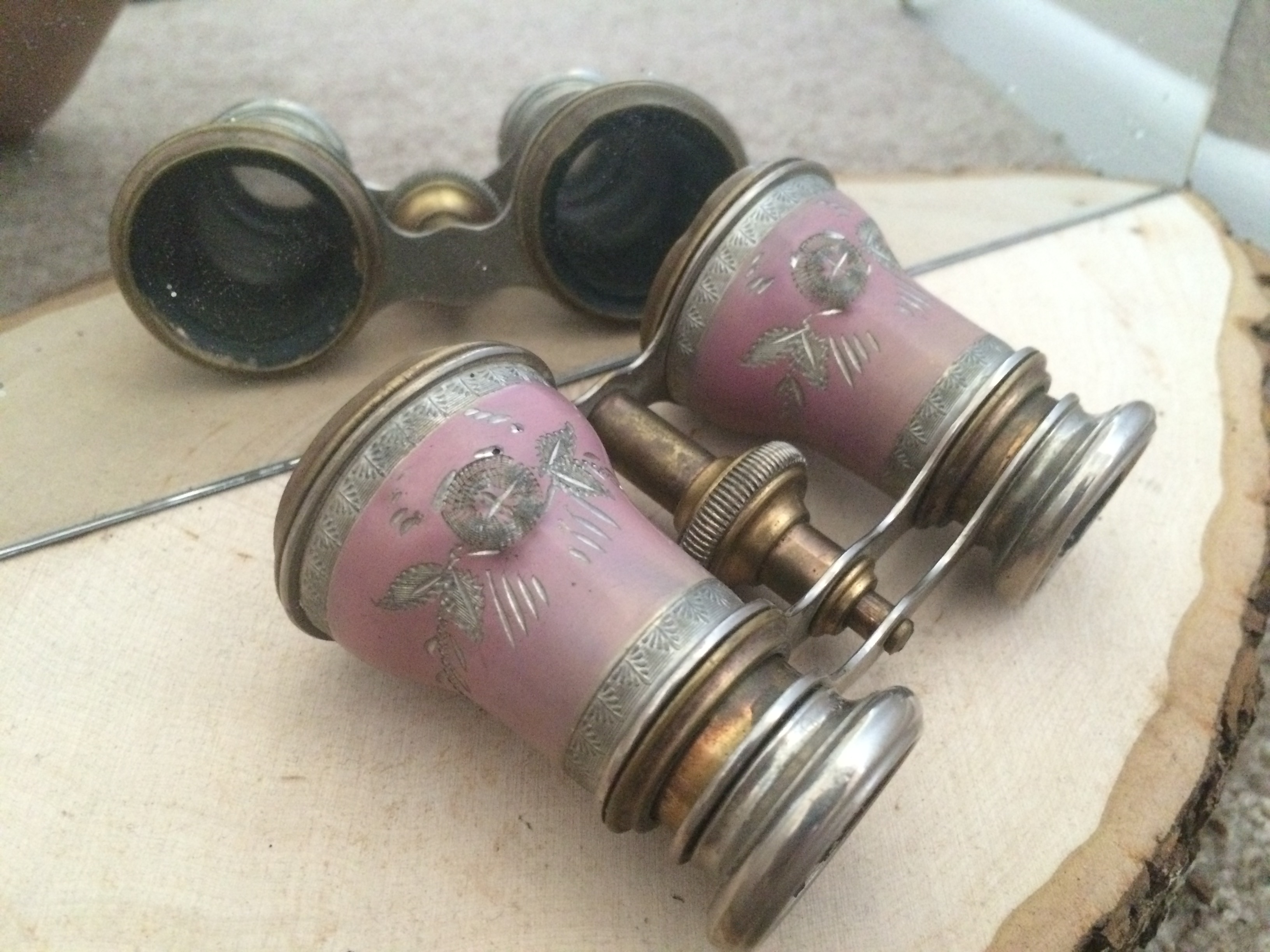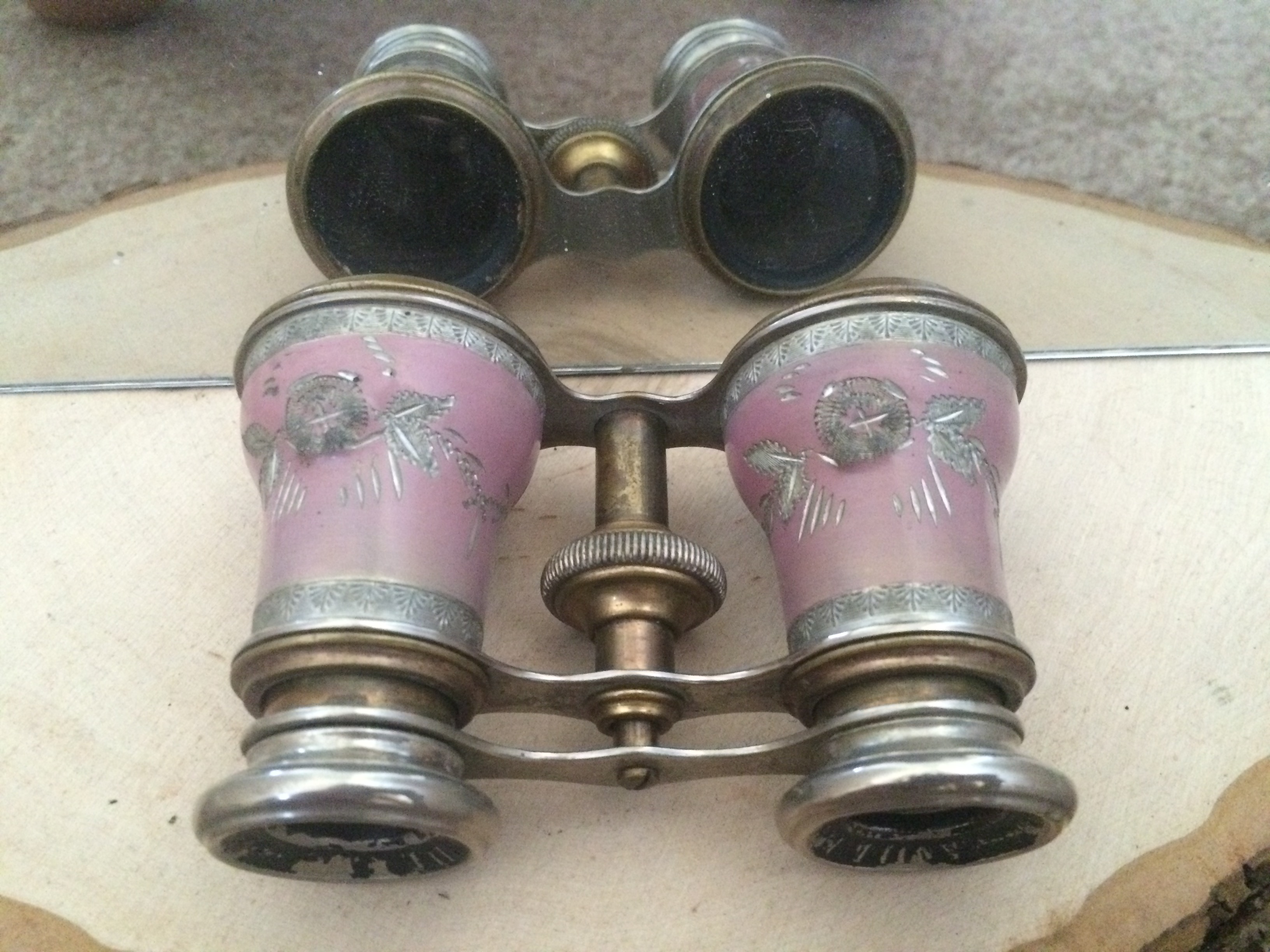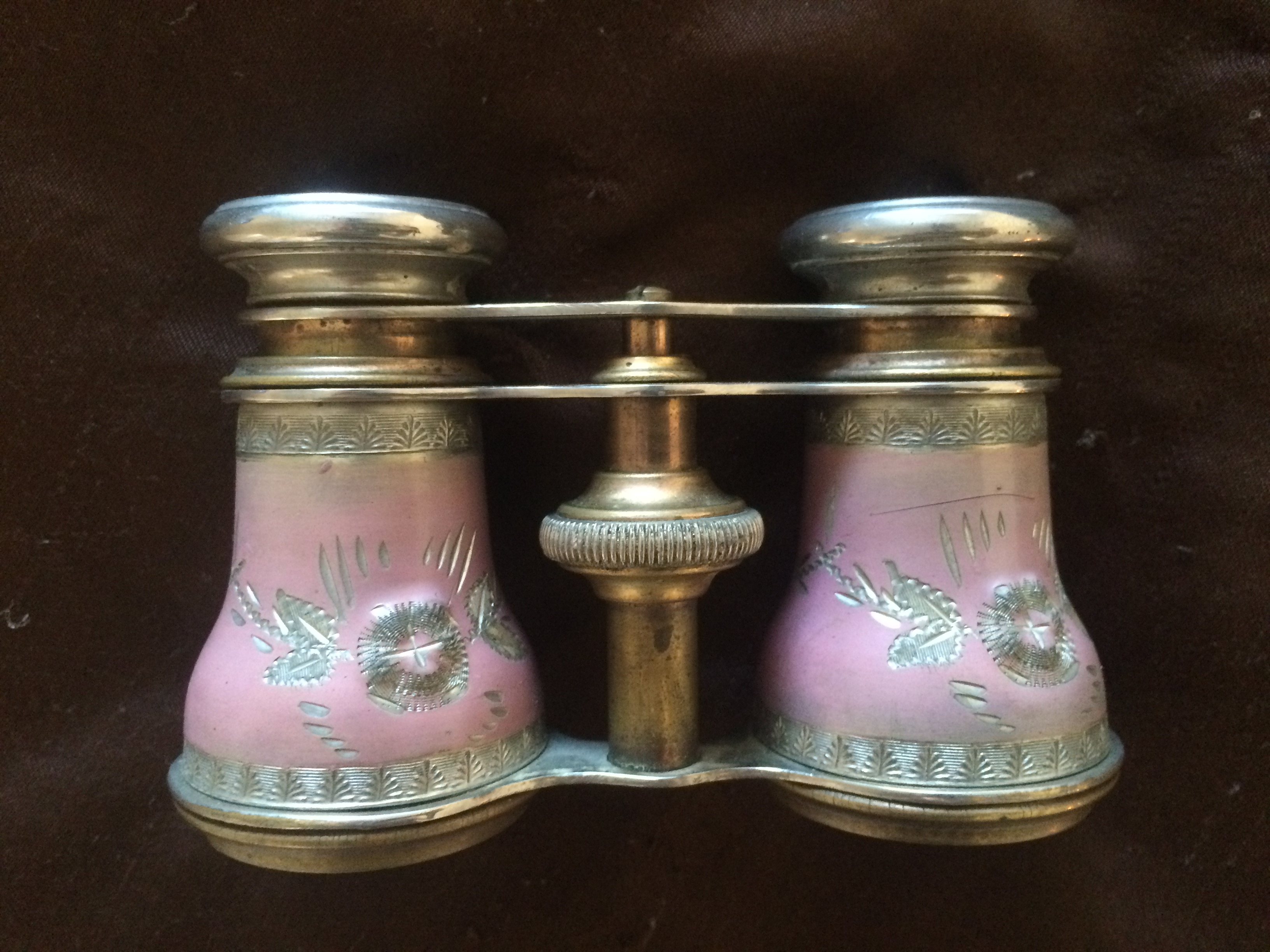 Gorgeous pair, has engravings and a few dings and light scuffs from use, brass is slightly discolored from age.