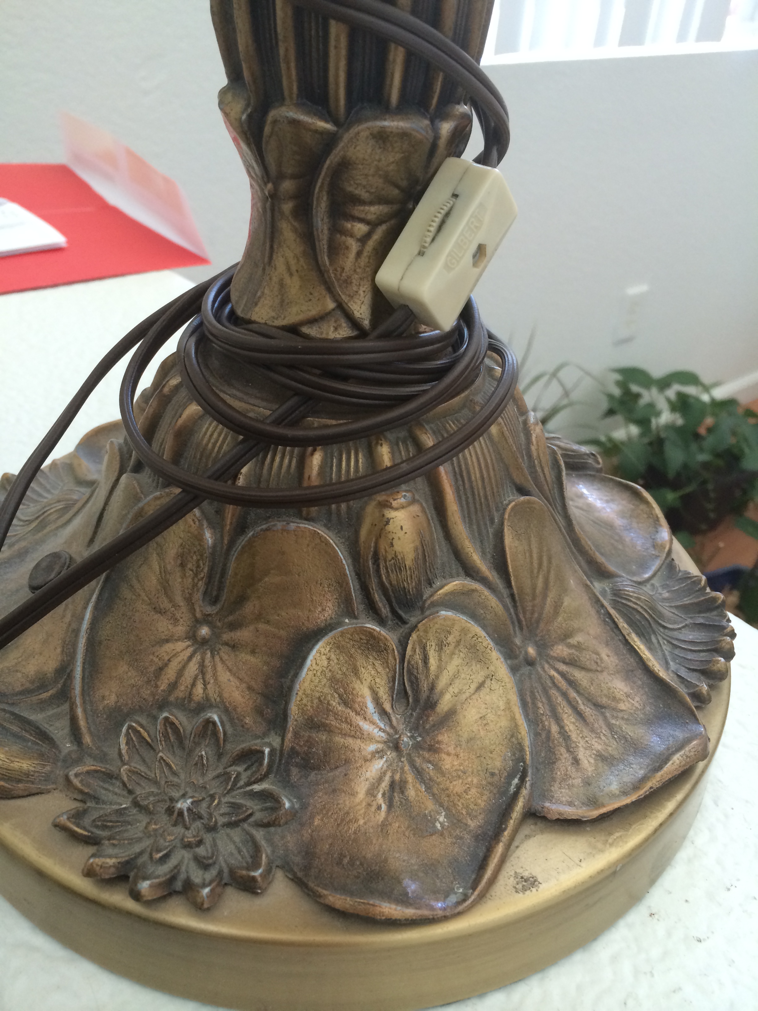Antique lamp, underneath base is only felt. I cannot locate a brand name. No cracks or scratches, original condition since I purchased it from a garage sale 5 years ago