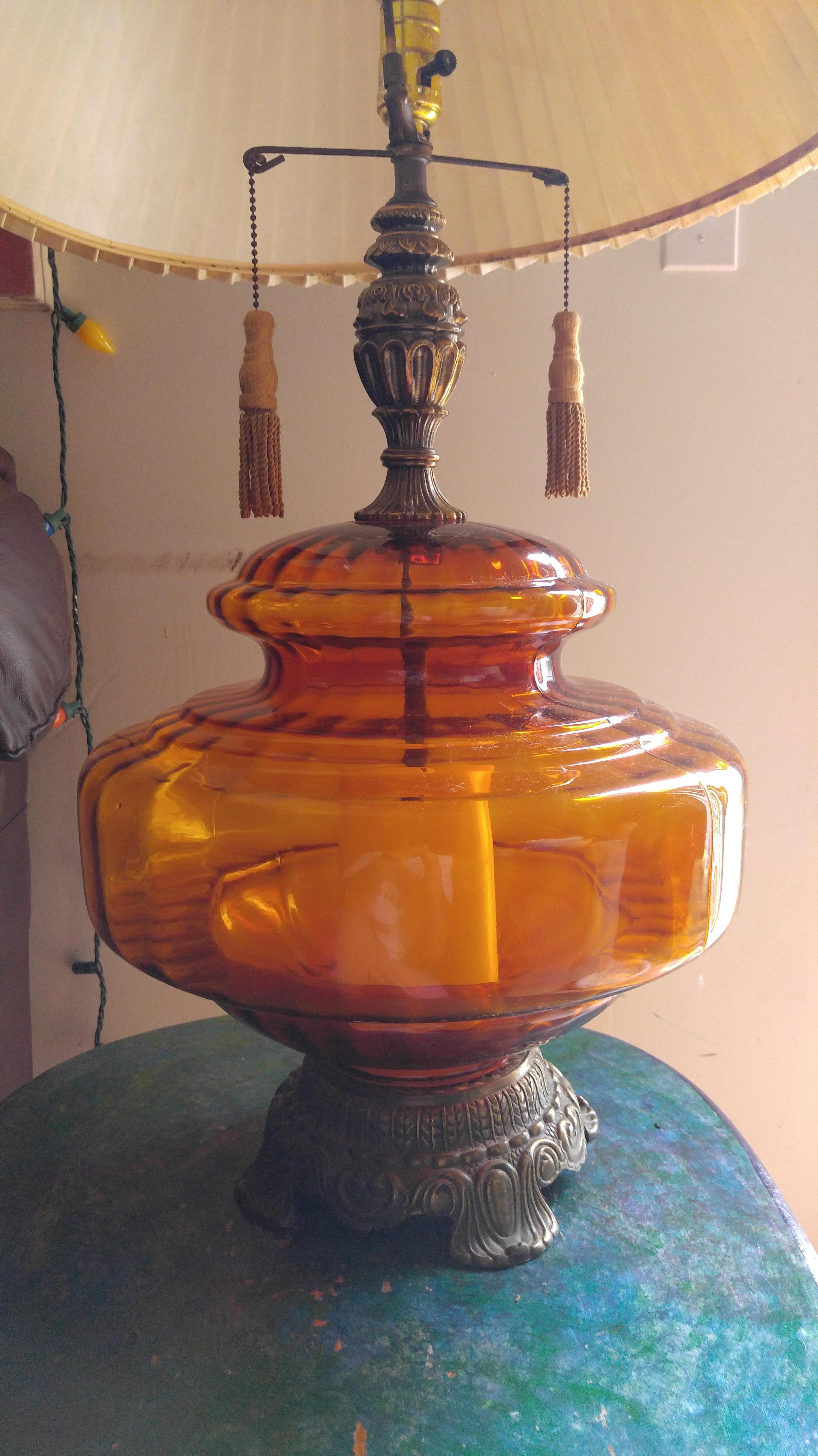 Antique Lamp amber colored glass ornate finish with tassels stamped 5045 ek73