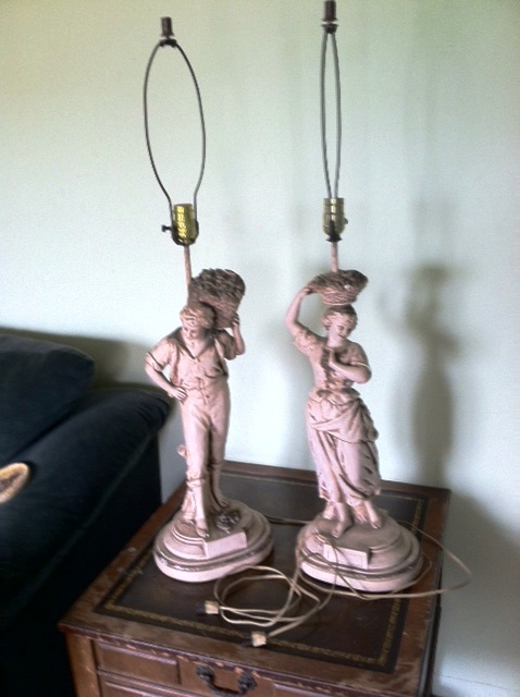 made of ceramic 1 is a girl maybe teenage carrying a basket on her head 2 is a boy maybe teenage carrying a larger basket on his shoulder