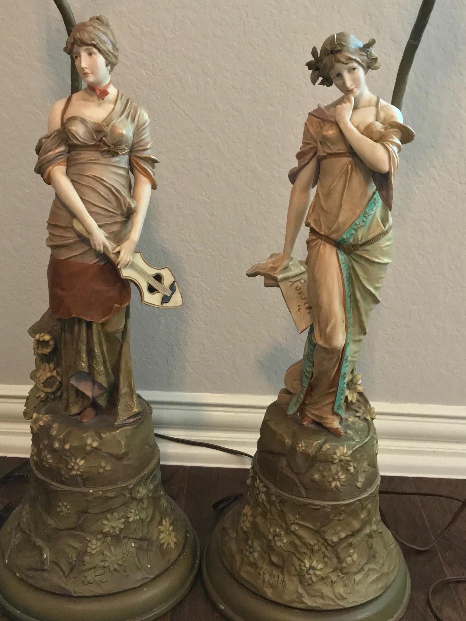 Hi everyone,  I inherited a pair of antique lamps from my grandparents who were antique collectors and dealers in NYC. These lamps have no discernable markings on them, and I believe they were sculptures that were made into lamps. Does anyone know the value of these items? They have been in my closet for years. Thank you in advance for any help you can offer!
