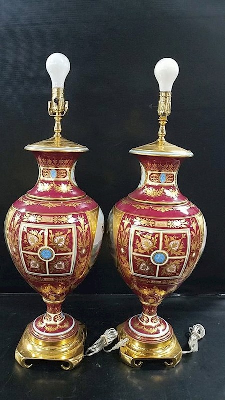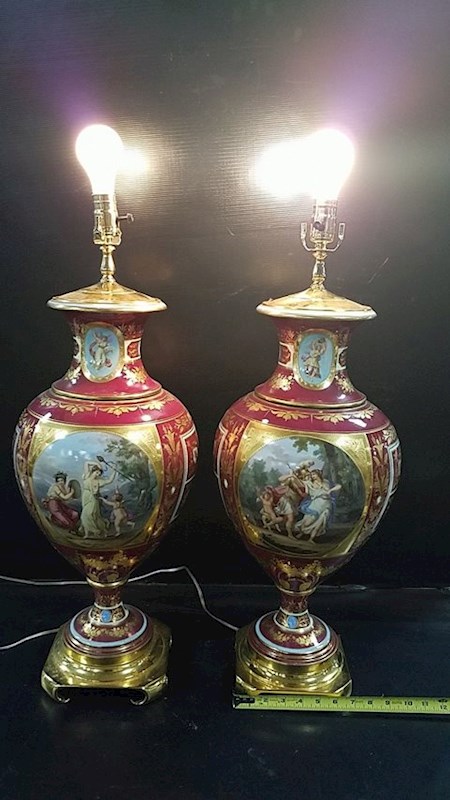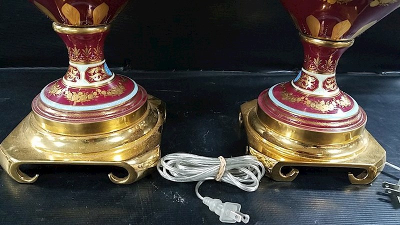 No maker marks.We would like to know anything about them.They do have 3 way switches.Not sure if they are antique.We have not seen anything like them.Thanks,Steve and Diane