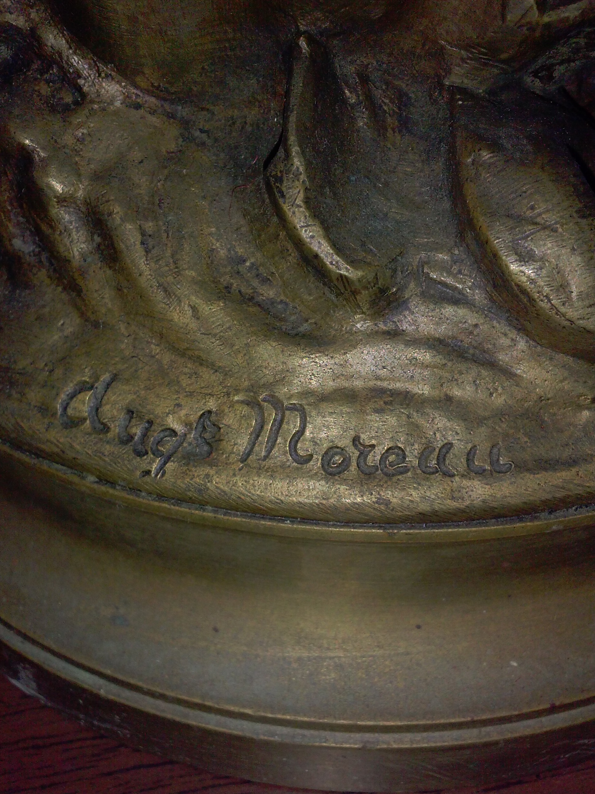 August Moreau died in 1917. the metal is Spelter, not a high priced metal. your lamps should sell in the $250.00 Dollar range there are some very high prices for Moreau lamp's on eBay.but there asking prices. not sold prices.