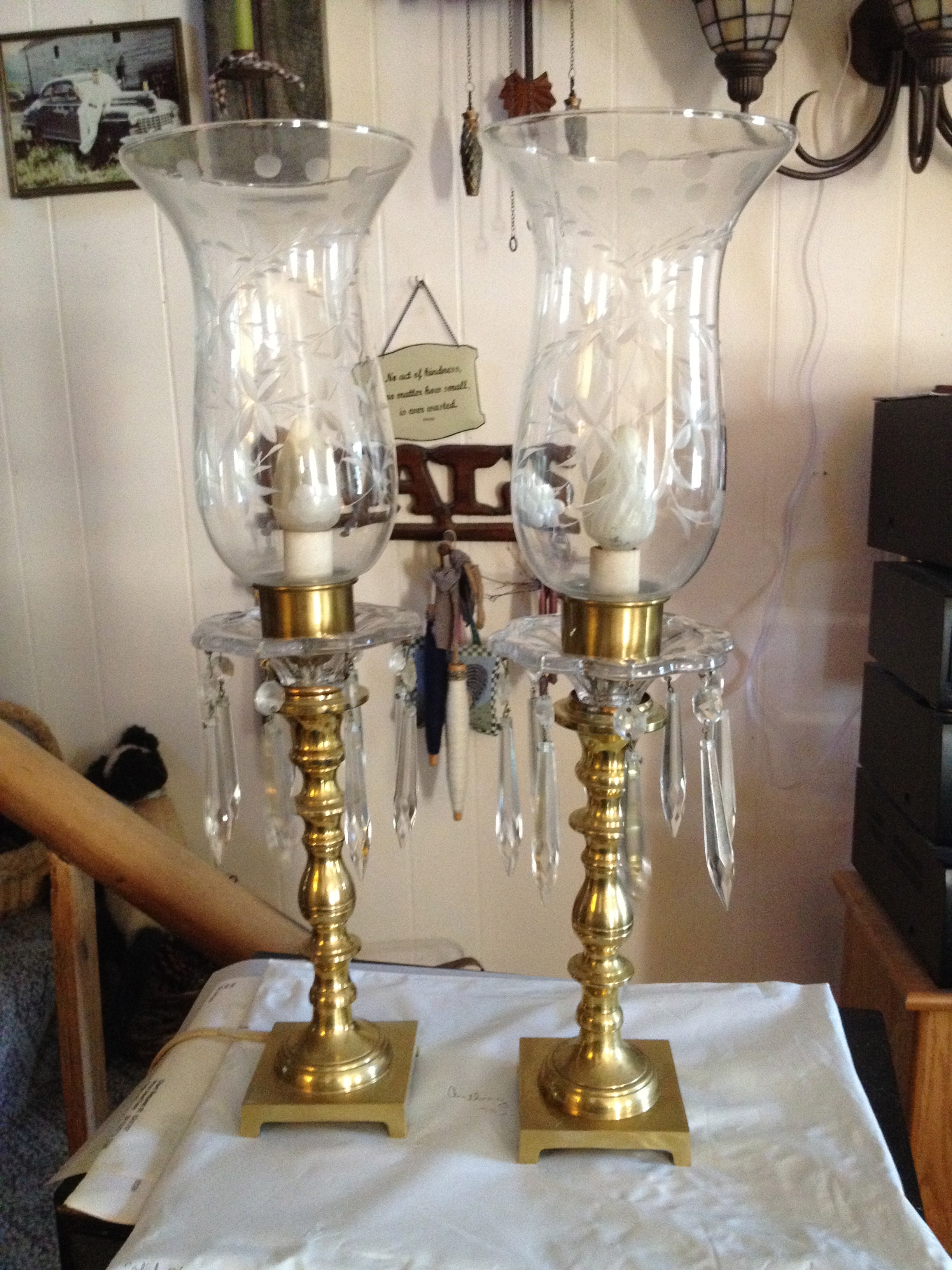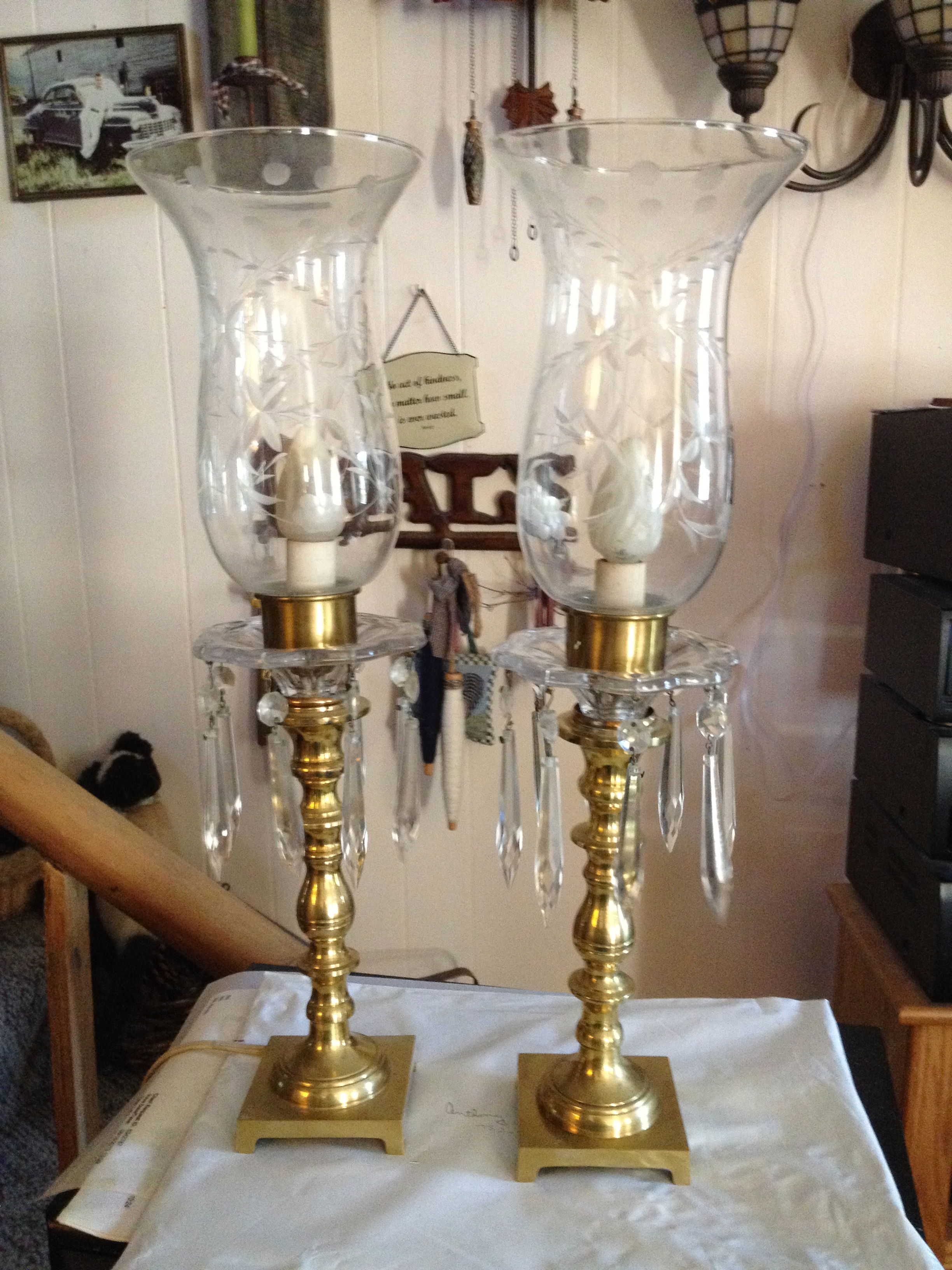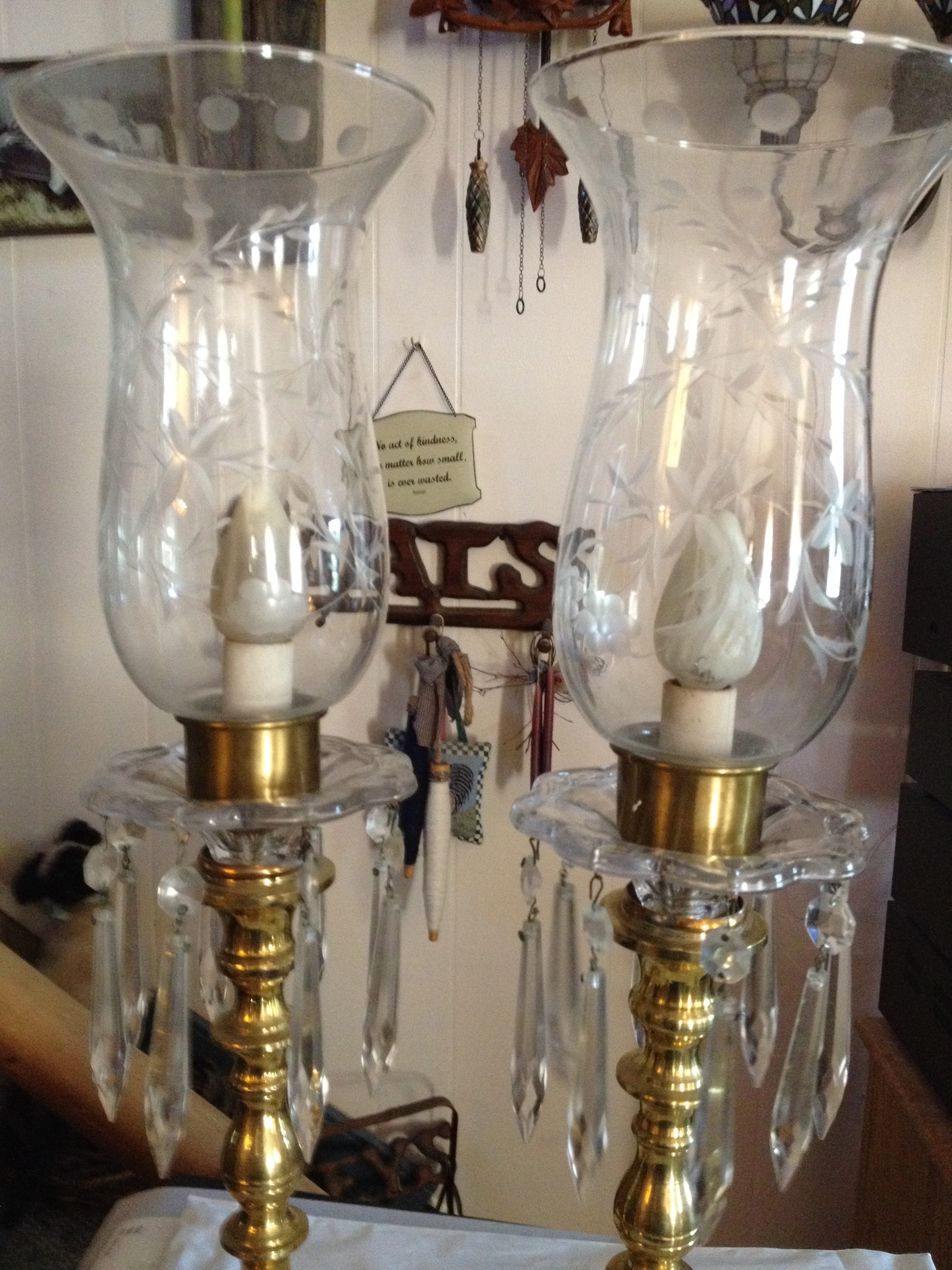 I really don't know much about these lamps. We picked them up at an estate sell, all of the prism's are there, and they both work. They are in great shape, no cracks, or chips. I would like to know how old they are and the value.
