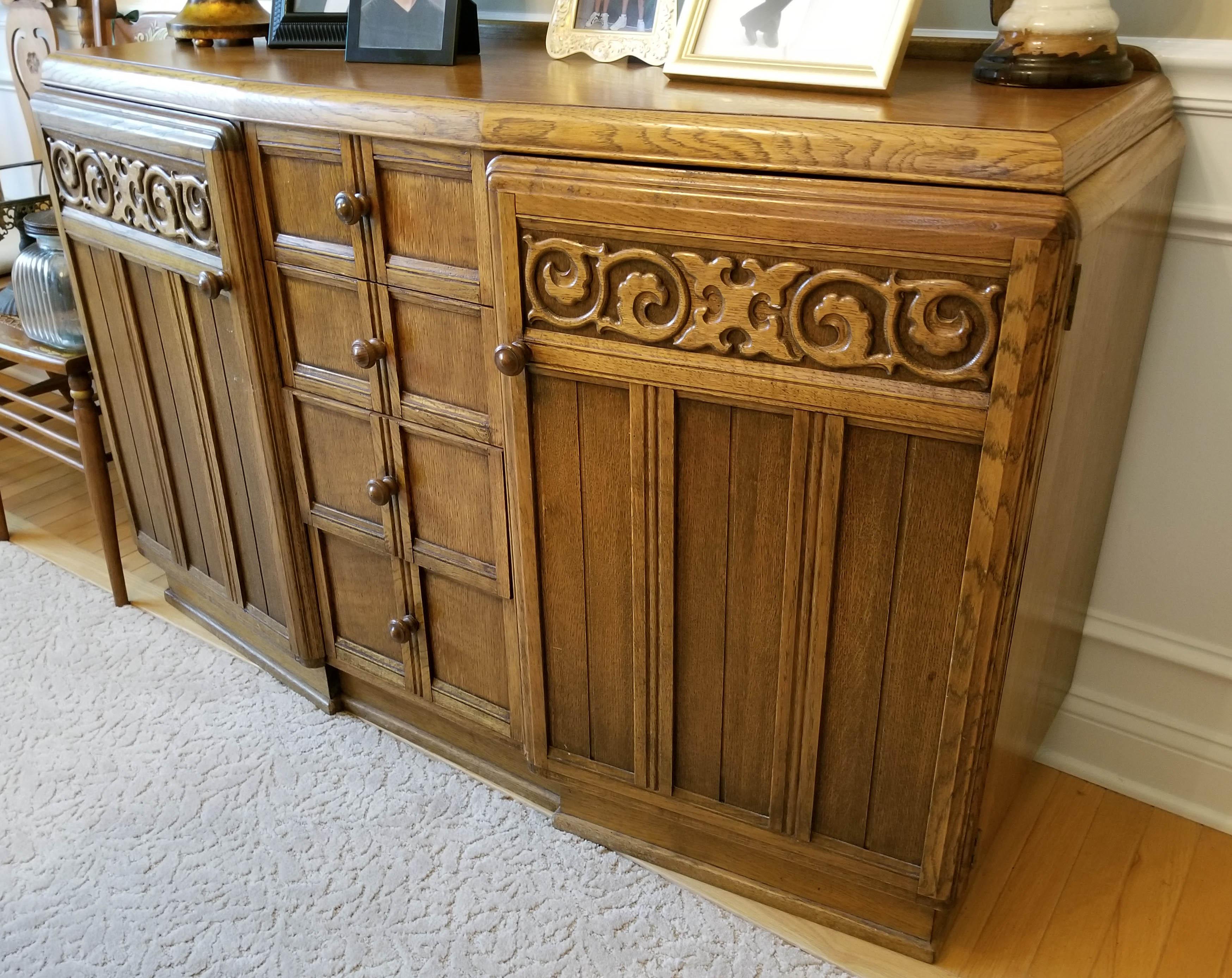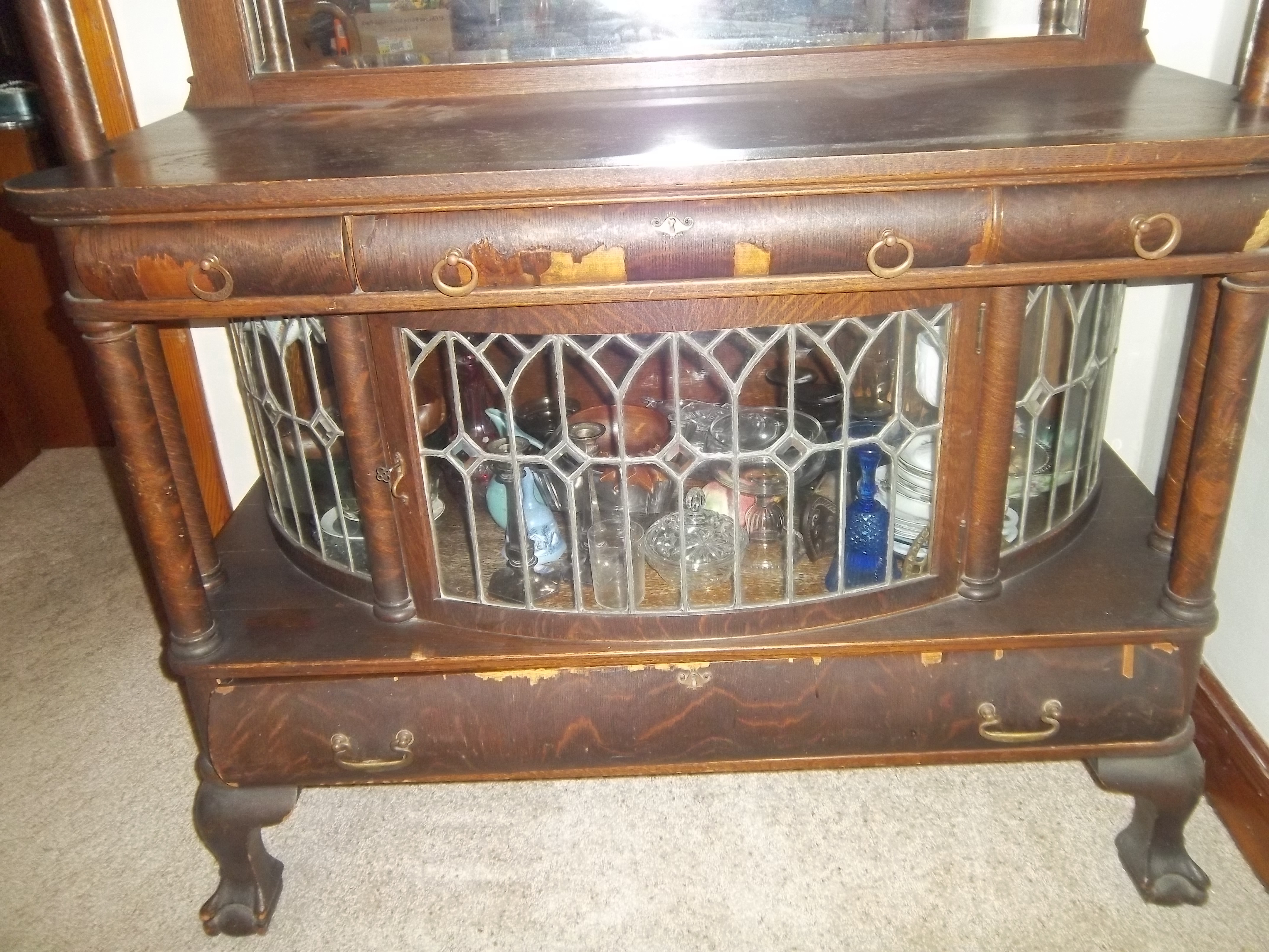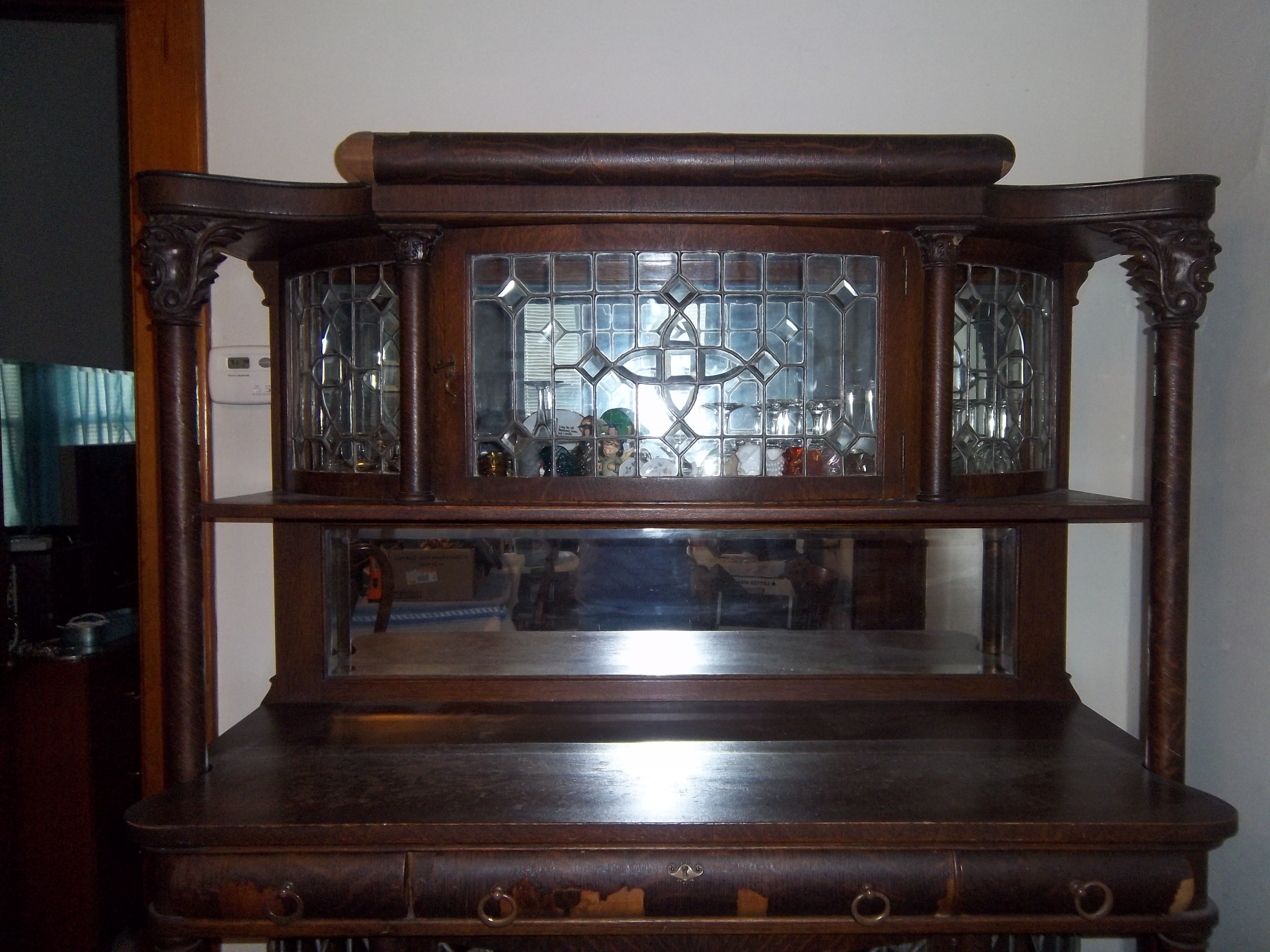 This antique leaded glass buffett was acquired by my parents when they moved into their home in 1959. I have inherited it from their estate. I would like to know how old this piece is, its history and present value. Thank you.