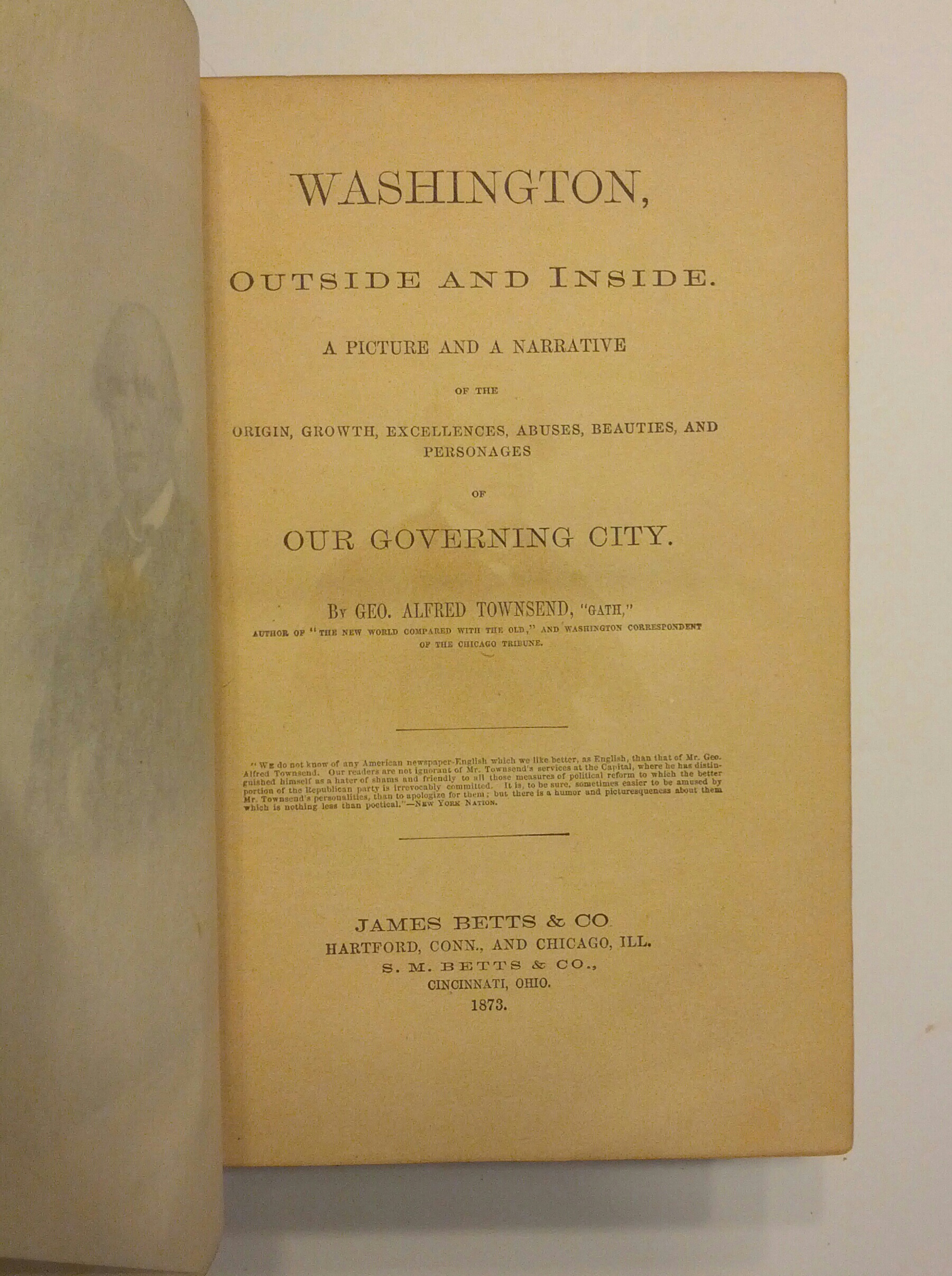 !873, WASHINGTON OUTSIDE AND INSIDE, OUR GOVERNING CITY GEO ALFRED TOWNSEND - ILLUSTRATED, I am trying to find out the value of this book