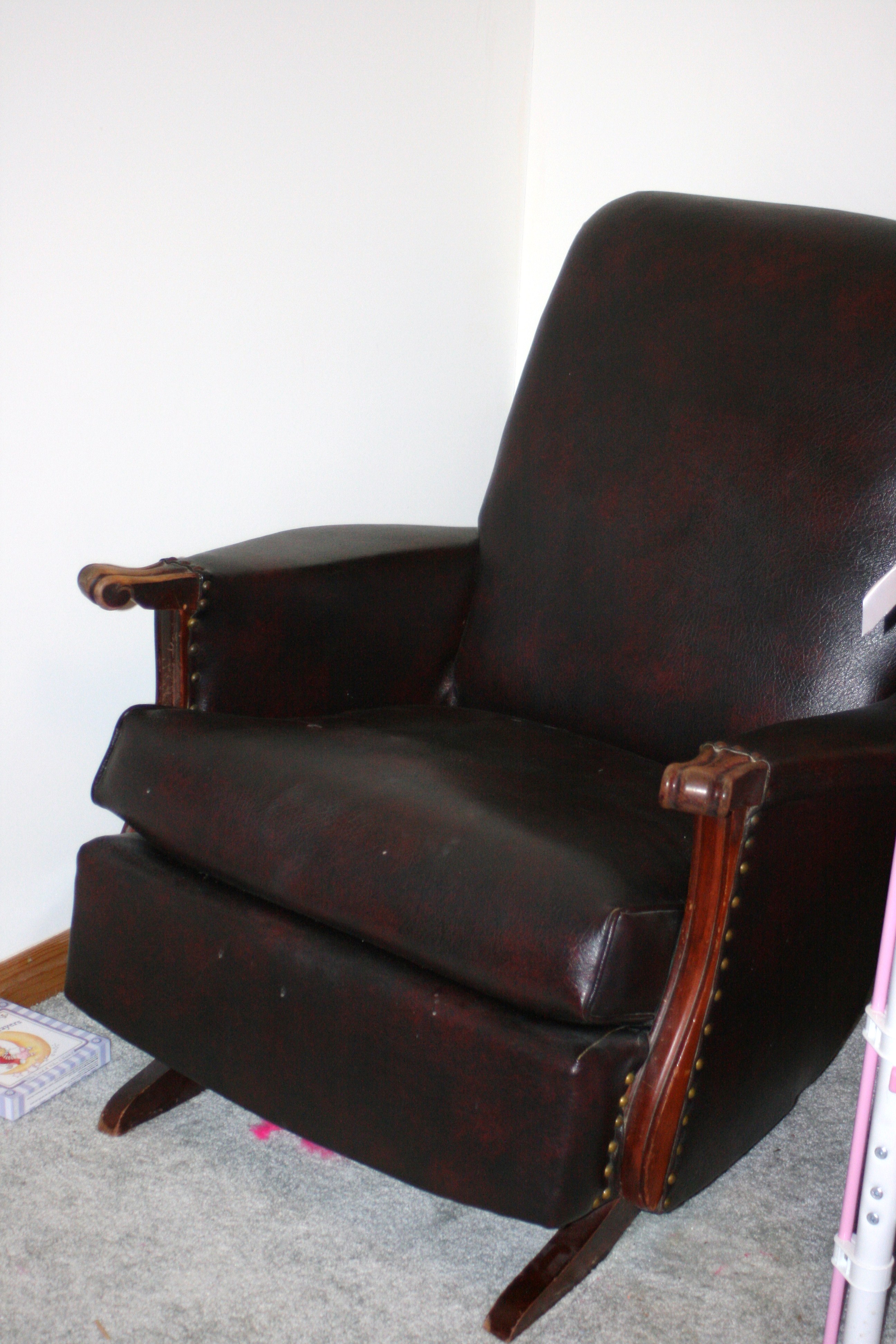 Antique (possibly handmade) leather platform rocker - Belonged to my G-Grandmother and was told that it was her father's chair - Have given it a good scrub with saddle soap yearly to keep the leather soft - Still rocks but isn't in use -