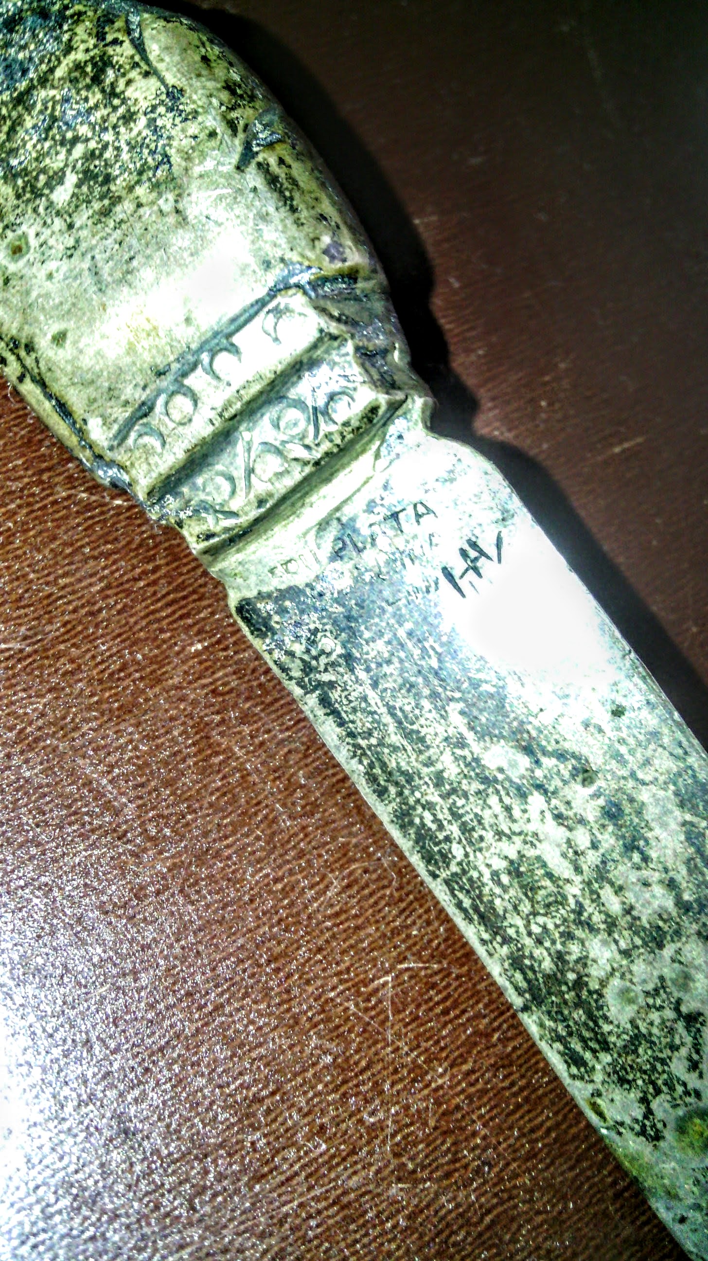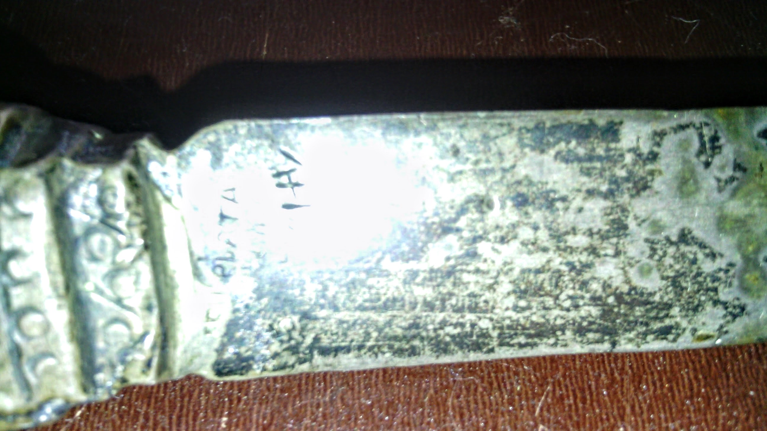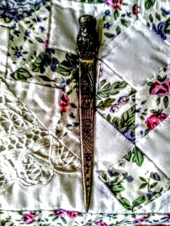 There is writing oun the back of the Letter Opener I am the worst speller, just noticed there is not a corrector for me. Oh well, i will do my best. The opener is 7" long.