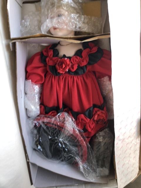 I have an antique limited edition Marie Osmond Raimi Porcelain Doll. It is number 0001 of 2500. Somewhere in time collection. 28 inches. Never used. Still in original packaging with certificate of authenticity and the dolls are hand numbered. Comes with matching bracelet. Doll is in perfect condition. Box has little wear and tear from traveling.