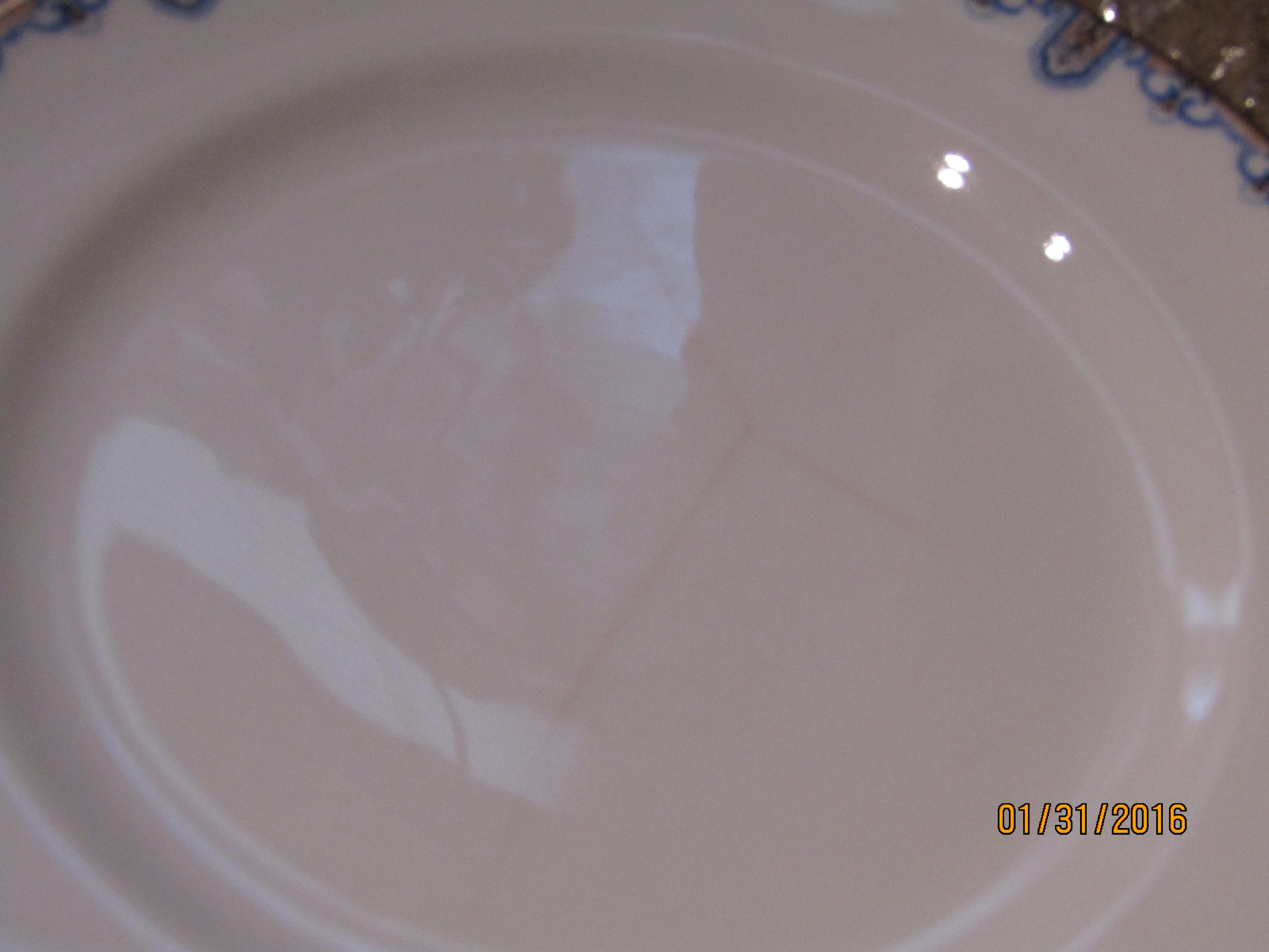 I inherited this set many years ago but have never been able to obtain any additional information on it. I was told the pattern is pre-war and the molds were discontinued during the war. I would like to know the value. I believe there is a 10 to 12 place setting inlcuding dinner plate, butter plate, soup bowl, dessert bowl, with 2 separate covered cassseroles, a covered butter dish, one piece gravy boat, finger bowl, cream and sugar set, and extra cups and saucers.