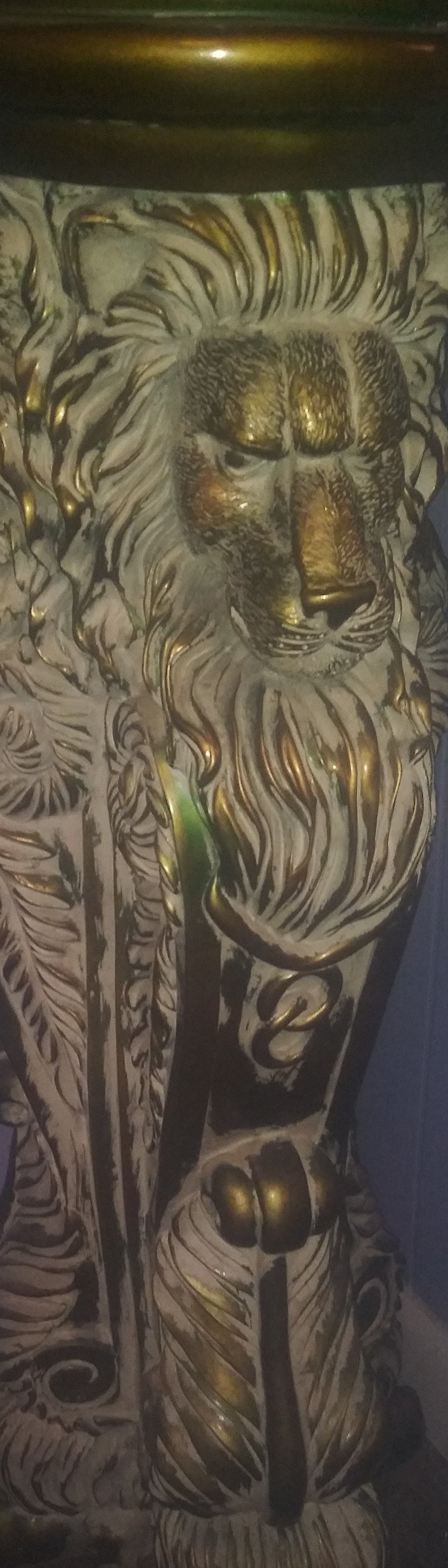 Heavy carved lion 3 in brass with wood top very tall