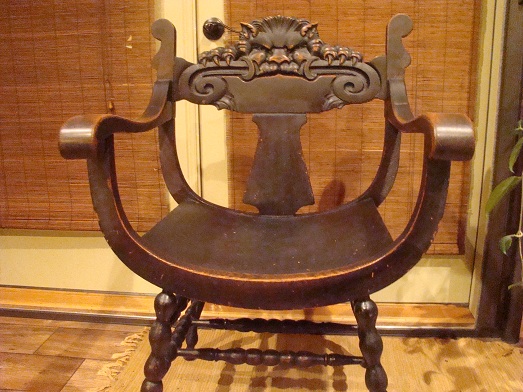 This chair has a curved seat measuring 17" front to back and 18" side to side. You can tell there used to be a label on the under side of the seat (small corner of tag left) but no markings or print is on it. Very sturdy, seems it may be oak but the seat is made of a lighter weight wood.