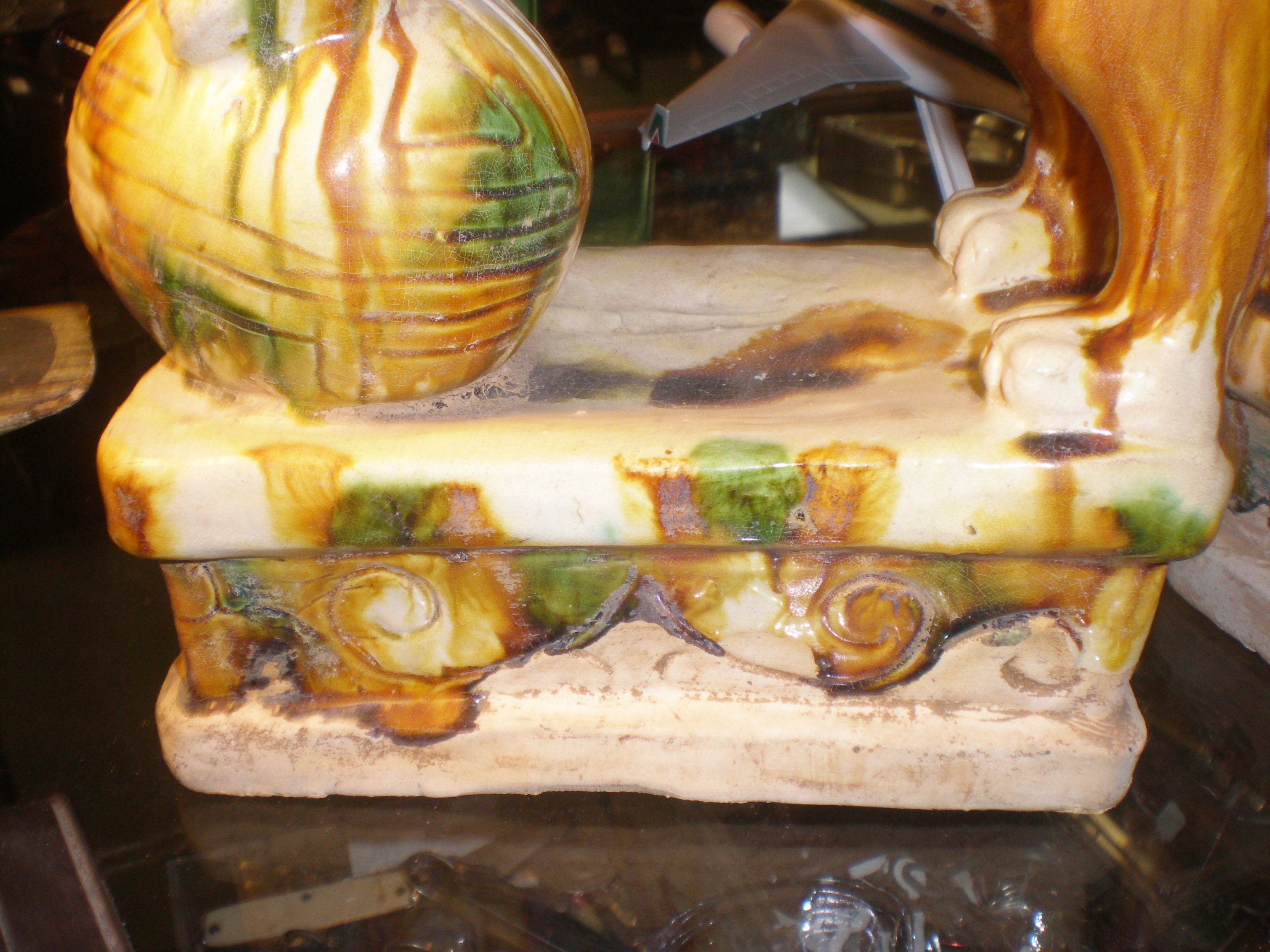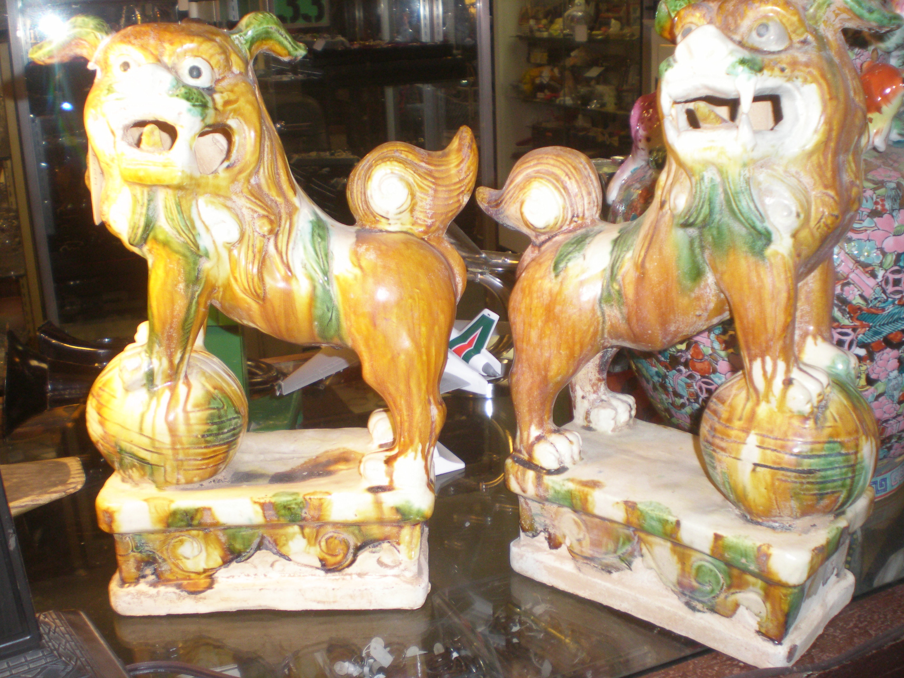 Hi every one, I'm hoping if any one knows what these two figure are they look very old , and looks asian. they also look as they have natural crazing . I would also wish to know their value they are very, very, heavy . These lion are made of some kind of clay.
