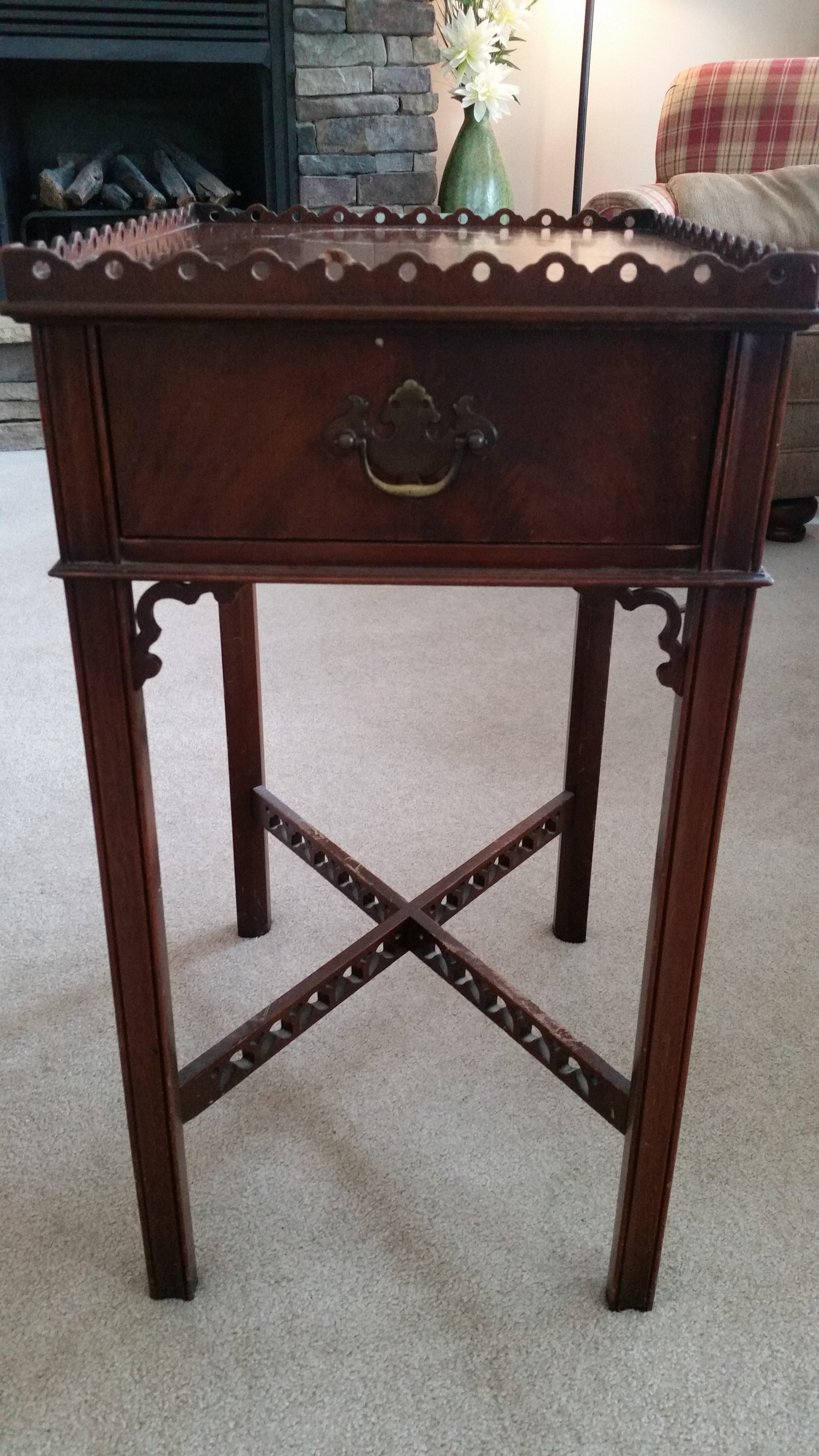 I have a set of Mahogany End Tables that measure 14.5" W X 19" D x27"H that do not have a manufacturer's lable that I can read. There is a lable on the inside of the drawer that says made to Grand Rapids Standards I think some of it is rubbed off. I am trying to identify and figure out if they are worth anything.