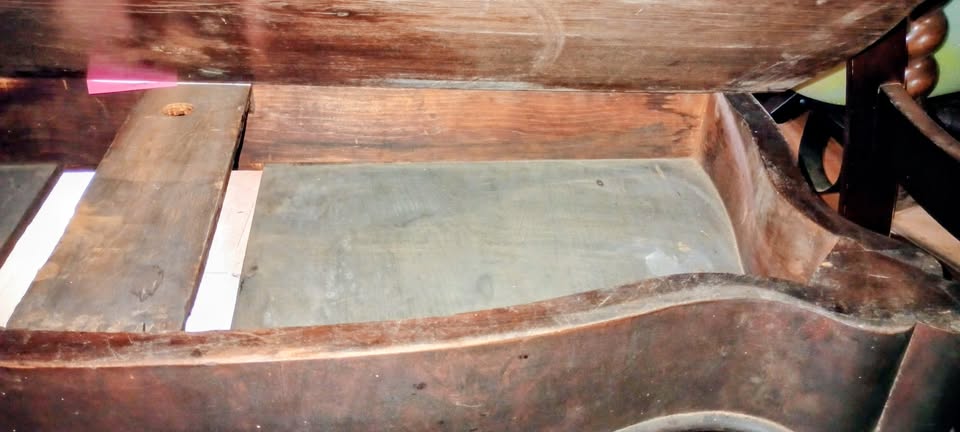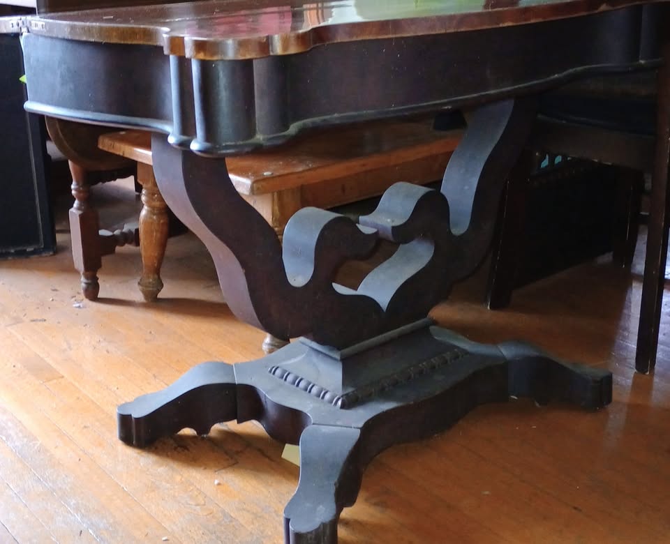 Description Antique American Empire or Victorian Flame Mahogany Flip Top Game Table circa 1840 has a top that opens to full size exposing incredible flame Mahogany + storage underneath. Piece is unsigned/unmarked but probably by THOMAS DAY. Has age-related cracks & chips in the varnish/shellac. The table top comes apart from the base (lifts off), with some original hardware missing.