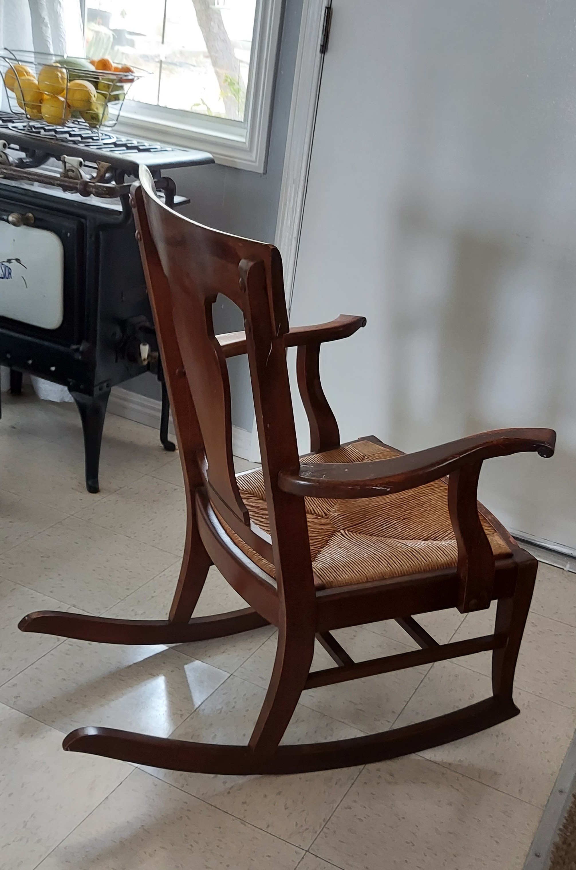 Condition: overall very good. Rush seat is in very good condition. No snags or tears.