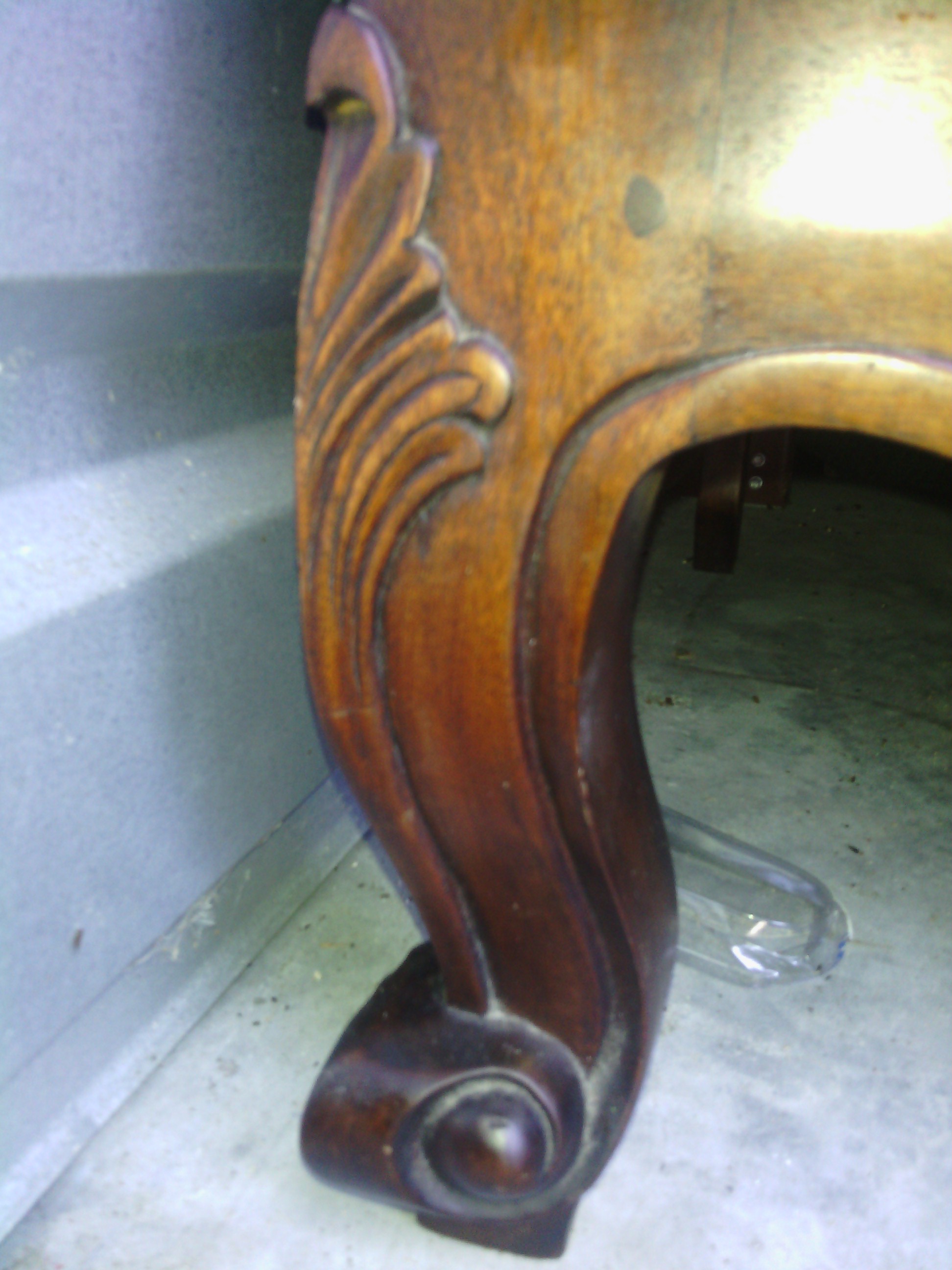 Distinguishing marks Claw feet, waffle-like carving, carved flowers