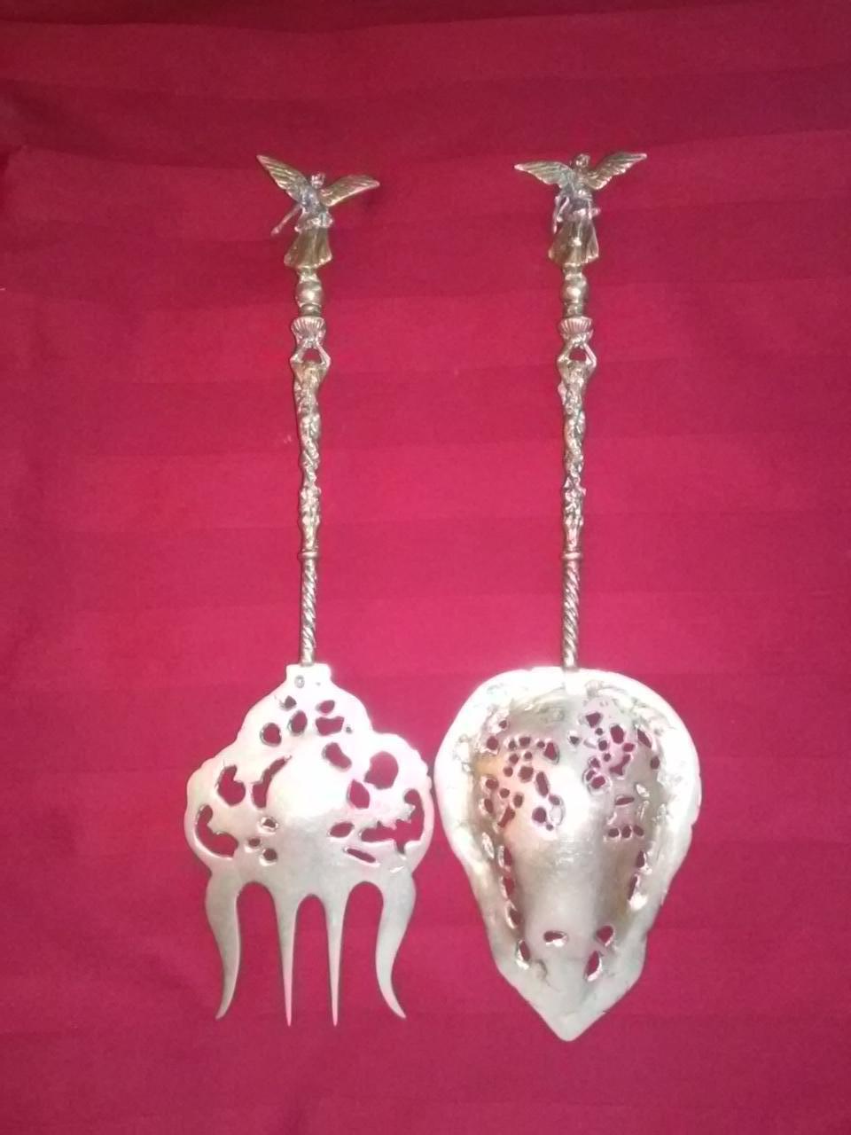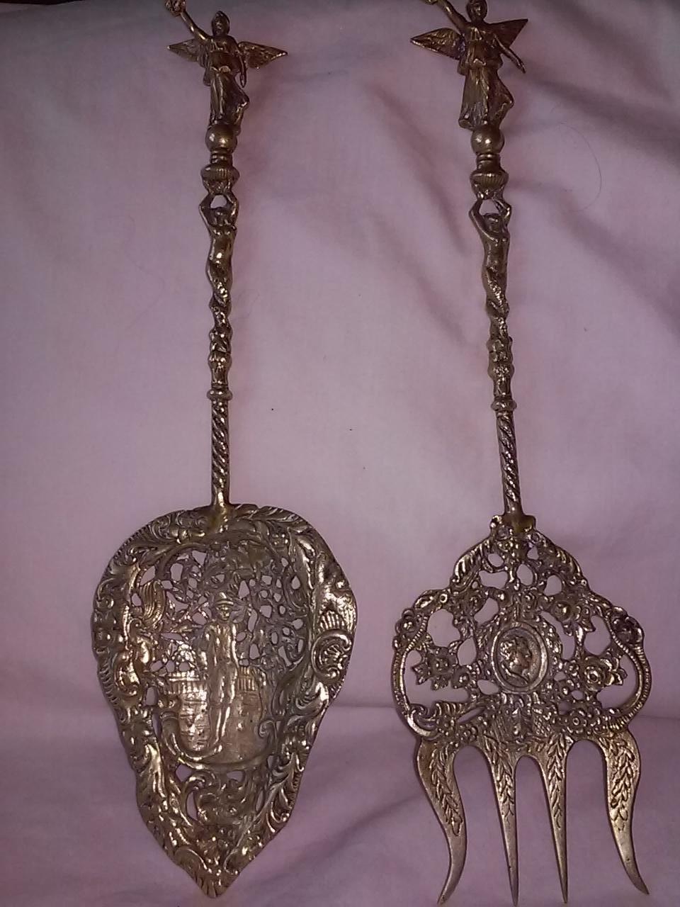 I am not certain what I have, it is an oversized fork and spoon with fine carvings inside plus figures on the handles.