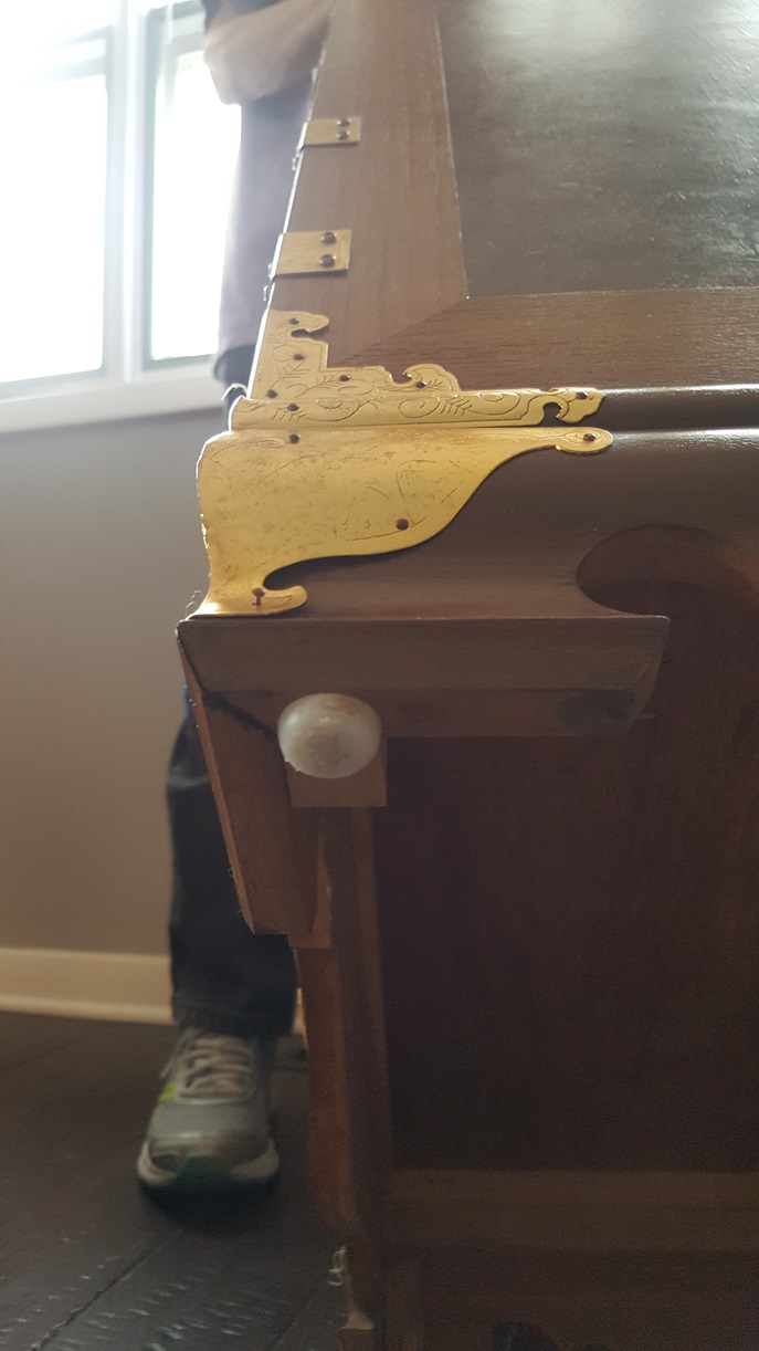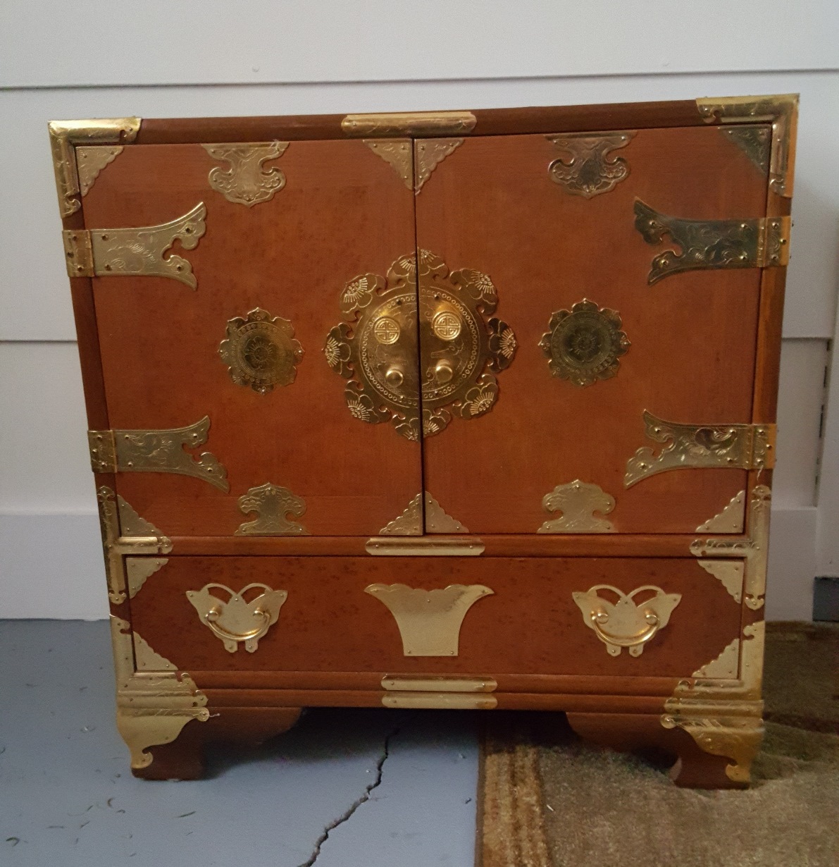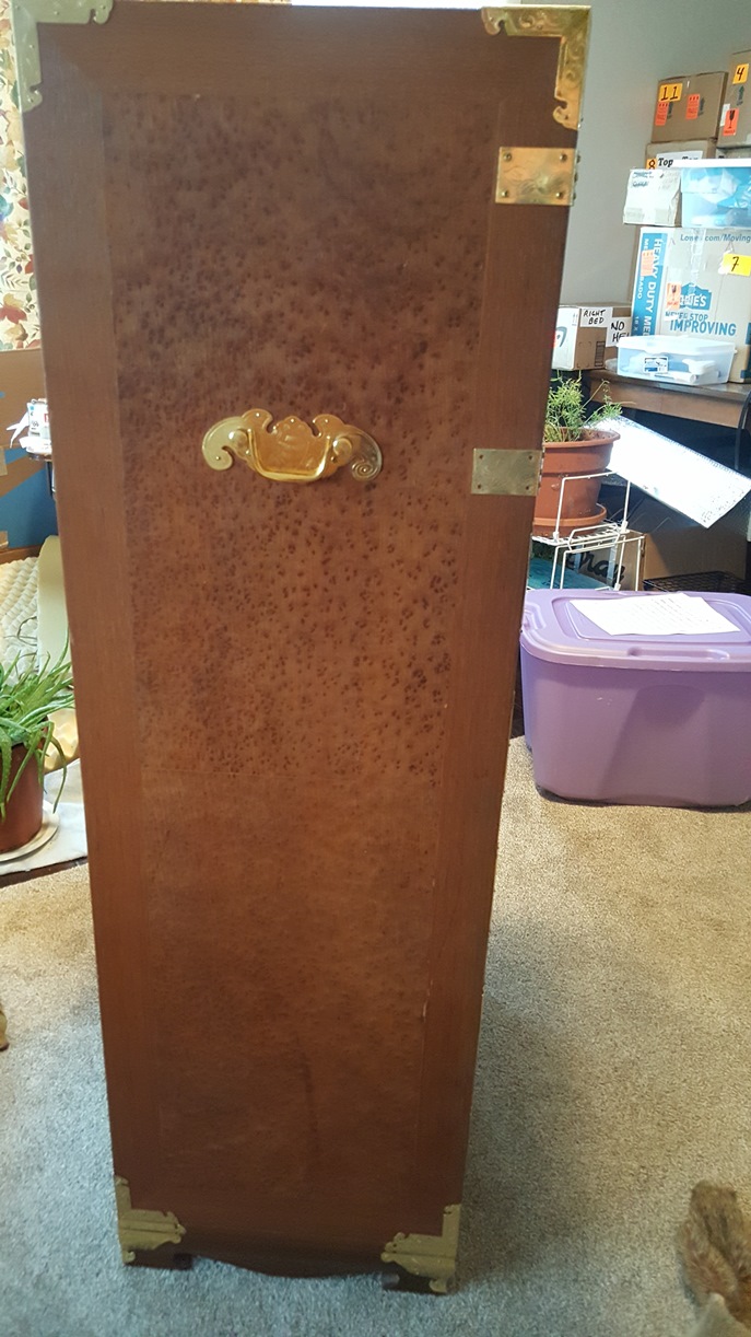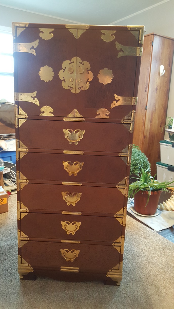 We picked these up at an auction. The auctioneer called them men's traveling something. Excellent condition. Made In Taiwan sticker on bottom. Joints are dovetailed. Bottoms have white round plastic glides. All drawers are lined with red fabric. Different kinds of wood on each piece. Dimensions: Tall: 51"H x 22"W x 15.5"D Mid-Size: 34"H x 20"W x 14.5"D Short x 2: 22.5"H x 22"W x 14"D Looking for any information: Who made them? What were they used for? What were they made of? When were they made? Thank you.