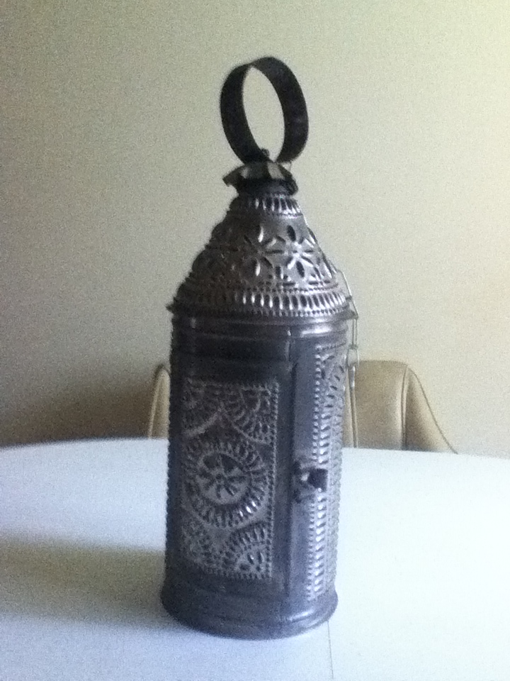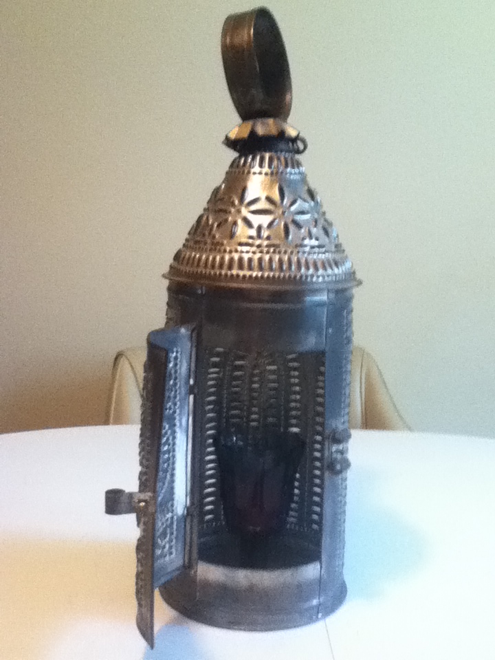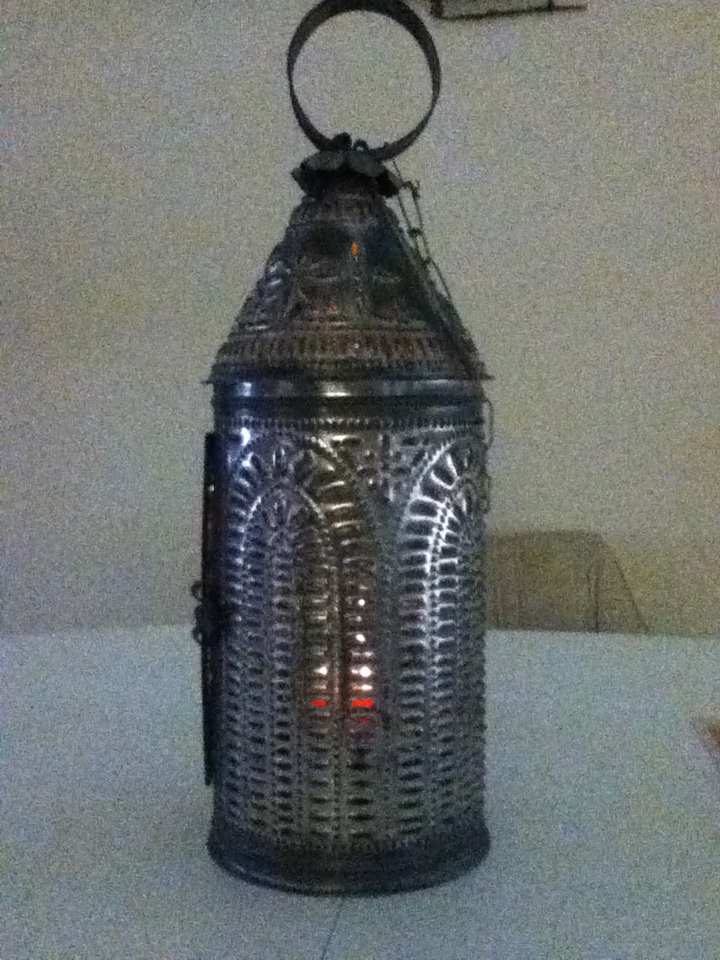 It's a metal candle lamp with a pattern cut into the metal that provides a pattern of light in a darkened room.