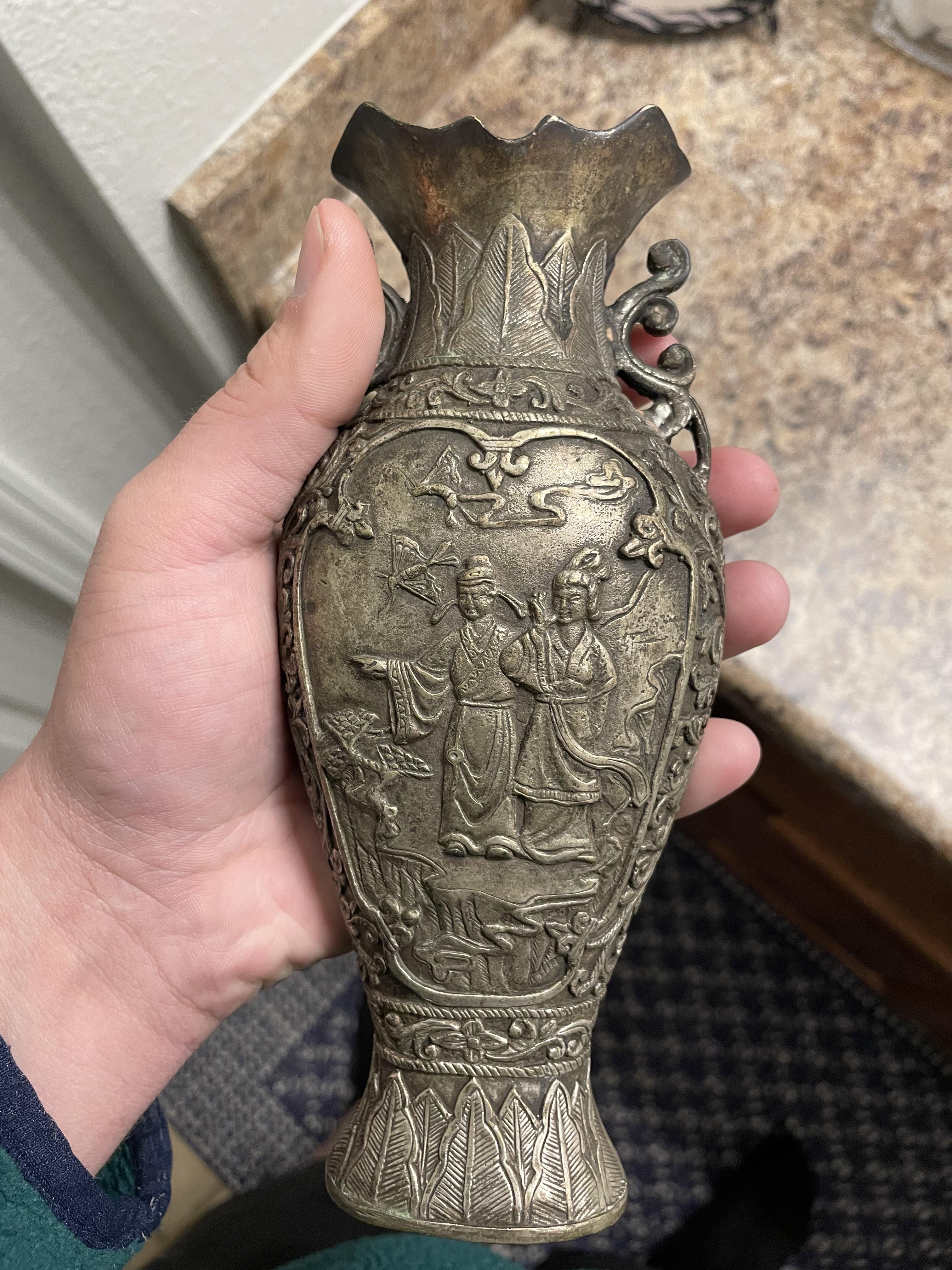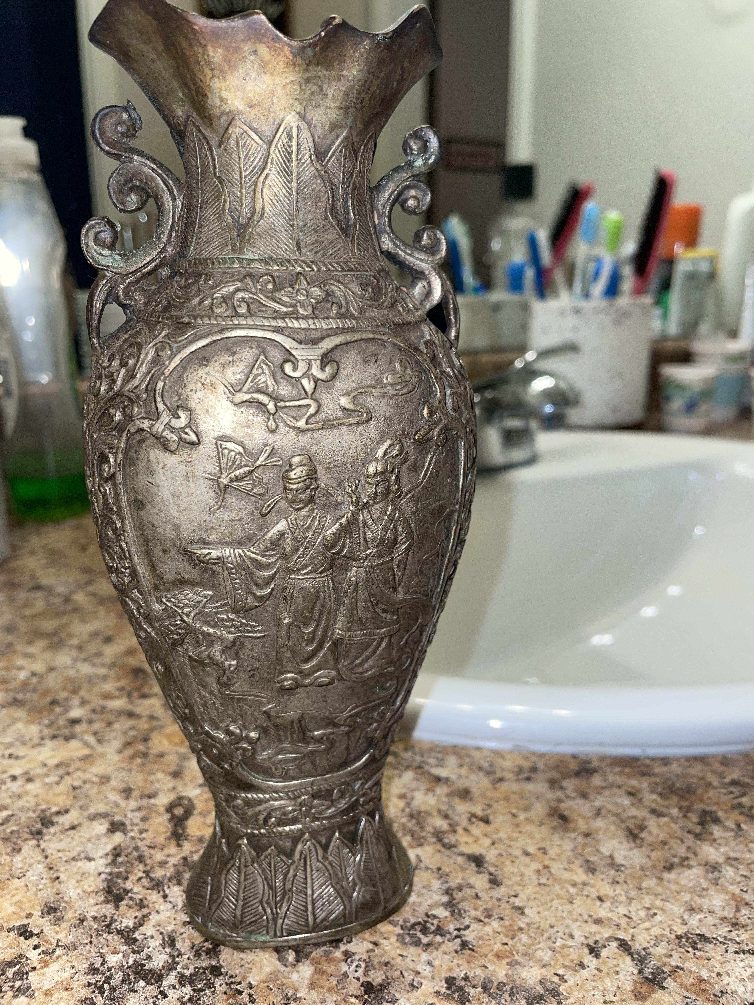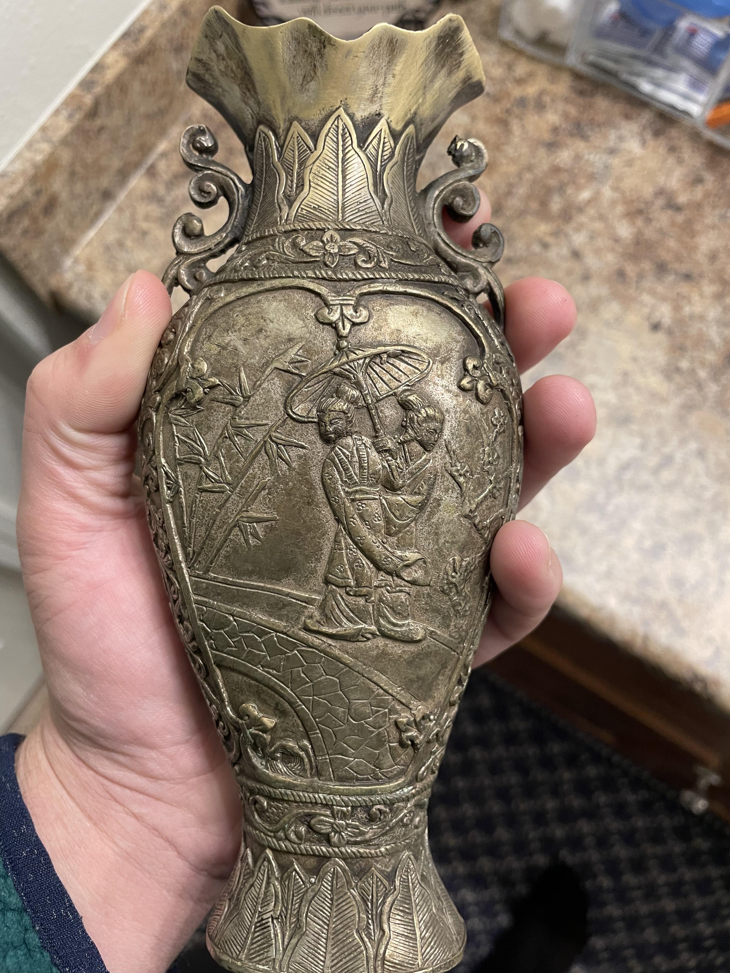 I had inherited this vase when one of my clients I worked with had passed away. He was a big collector of various types of antique art and collectibles. Any information on this piece, like the origin, time period, and it’s worth, would be greatly appreciated!