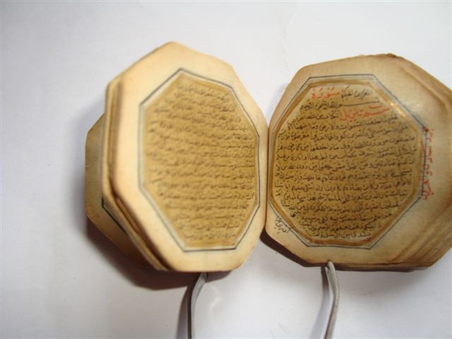 Handwritten, complete with all pages. About 18th century. Heavy gold work. Comes with original Silver case.